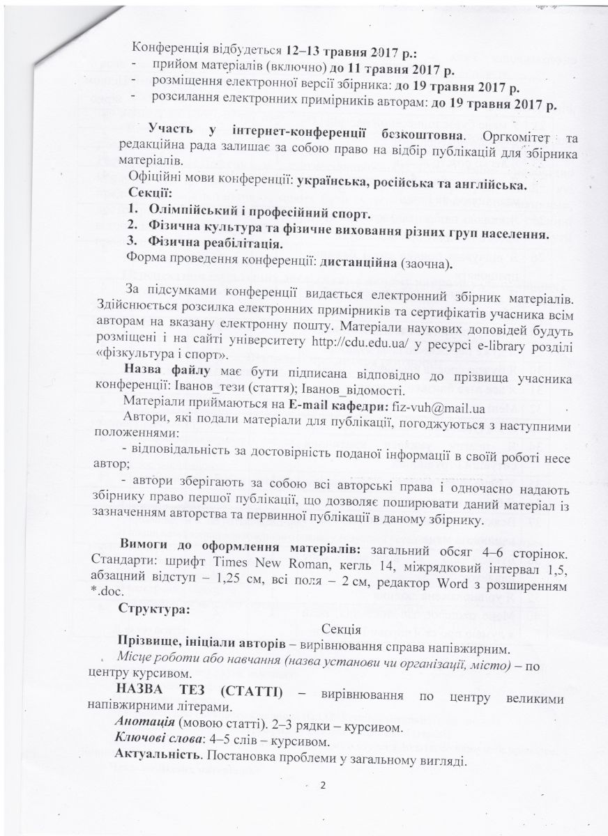 • VIII Всеукраїнська електронна конференція з міжнародною участю «ІННОВАЦІЙНІ ТА ІНФОРМАЦІЙНІ ТЕХНОЛОГІЇ У ФІЗИЧНІЙ КУЛЬТУРІ, СПОРТІ, ТЕРАПІЇ ТА РЕАБІЛІТАЦІЇ»
