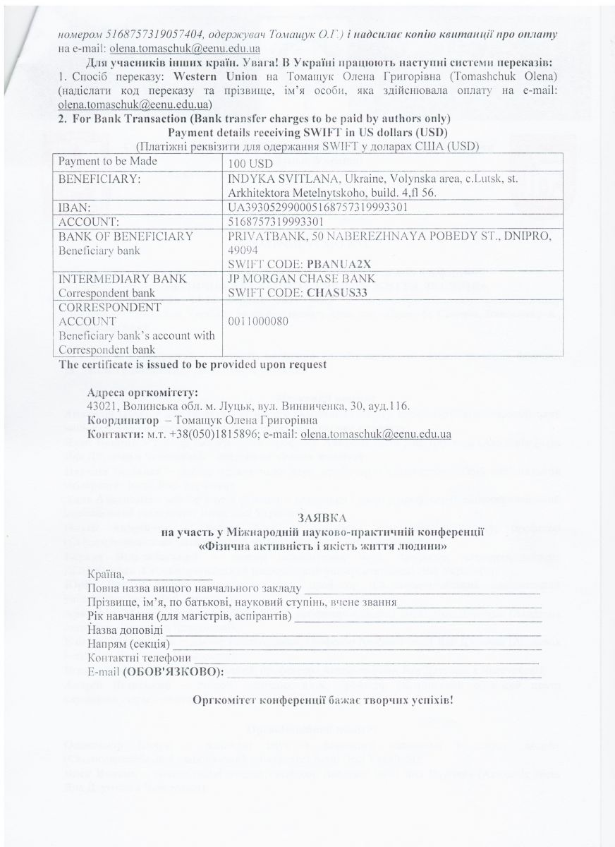 • VIII Всеукраїнська електронна конференція з міжнародною участю «ІННОВАЦІЙНІ ТА ІНФОРМАЦІЙНІ ТЕХНОЛОГІЇ У ФІЗИЧНІЙ КУЛЬТУРІ, СПОРТІ, ТЕРАПІЇ ТА РЕАБІЛІТАЦІЇ»