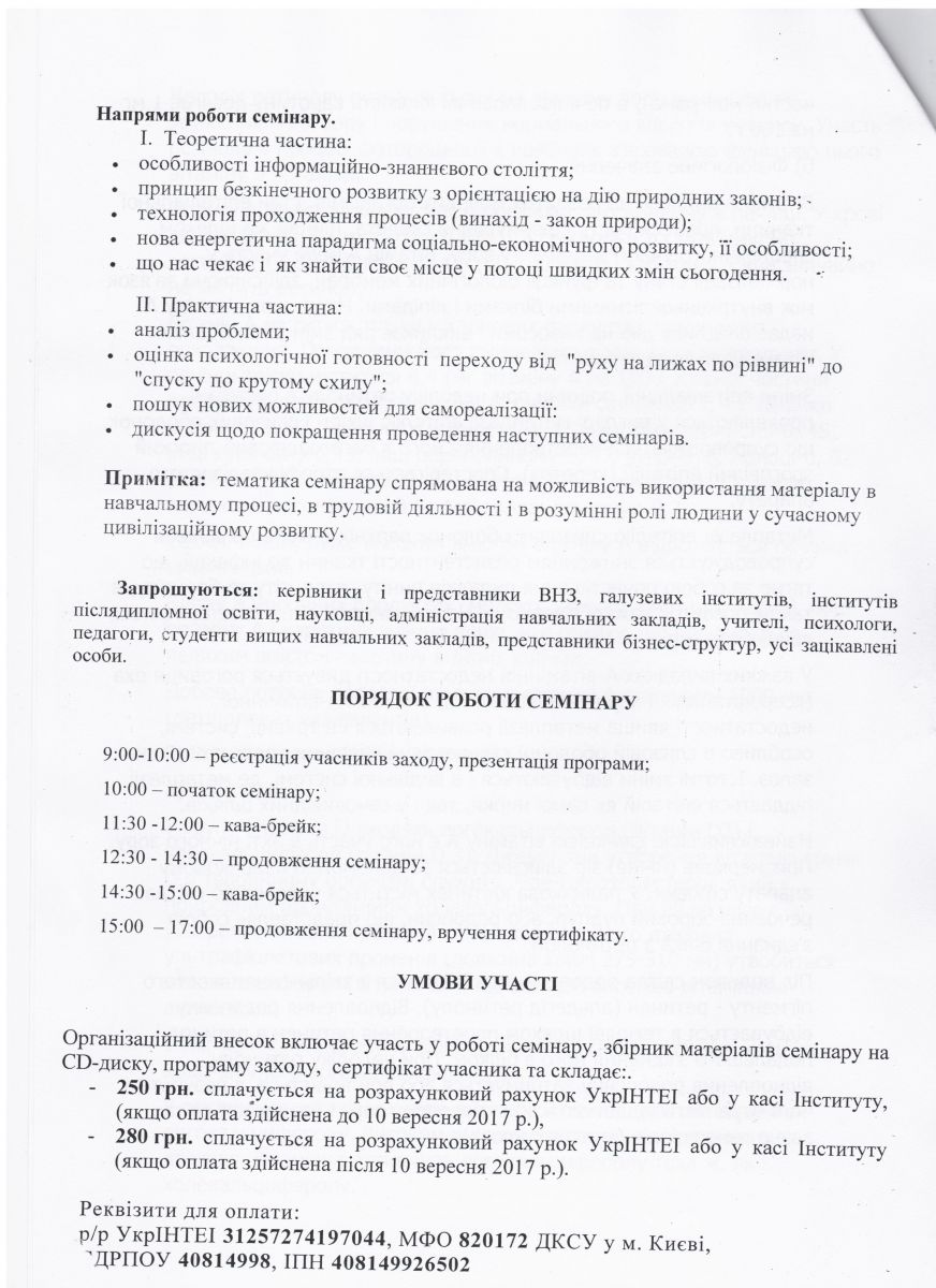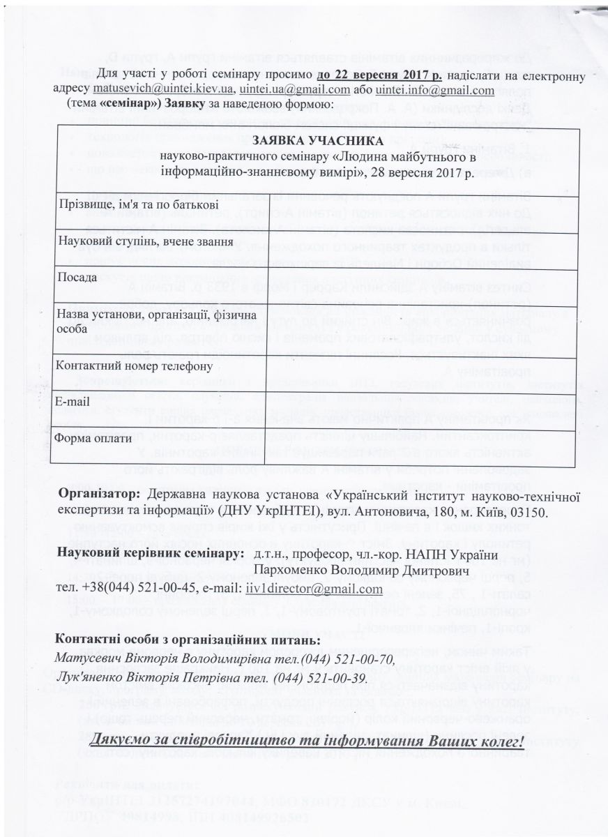 • 28 вересня 2017 року у м. Києві в ДНУ УкрІНТЕІ відбудеться науково-практичний семінар "Людина майбутнього в інформаційно-знаннєвому вимірі"