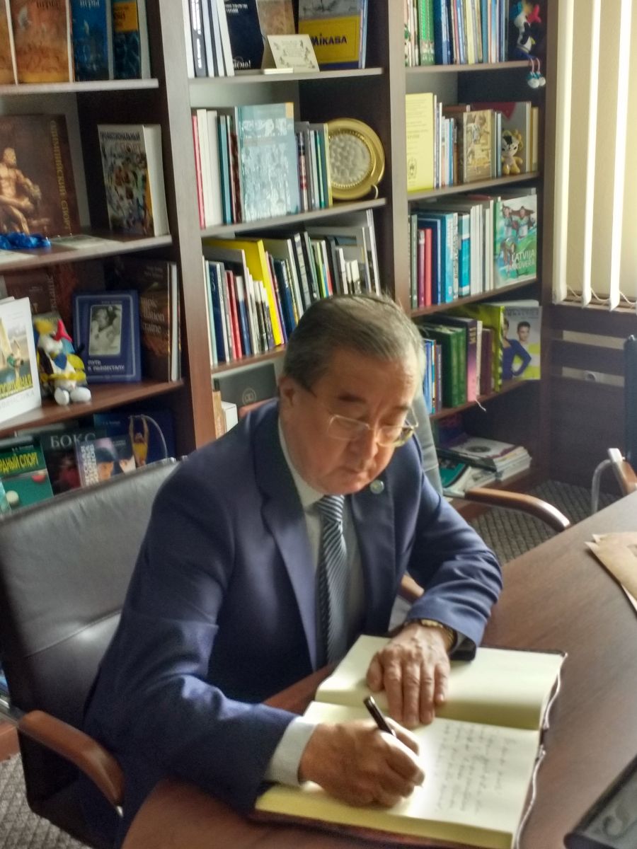 Бакитжан Ордабаєв  дав високу оцінку діяльності  НОК України, Міжнародного центру олімпійських досліджень та освіти,  Олімпійської академії України  та  українських науковців  з питань  поширення цінностей олімпійського руху. Свої враження та побажання він залишив у Книзі почесних гостей.