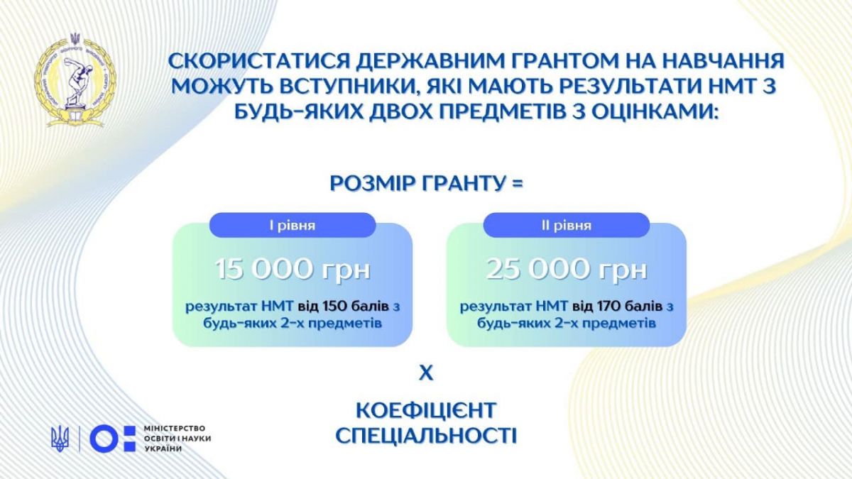 Державні гранти для здобувачів вищої освіти у 2024 році!