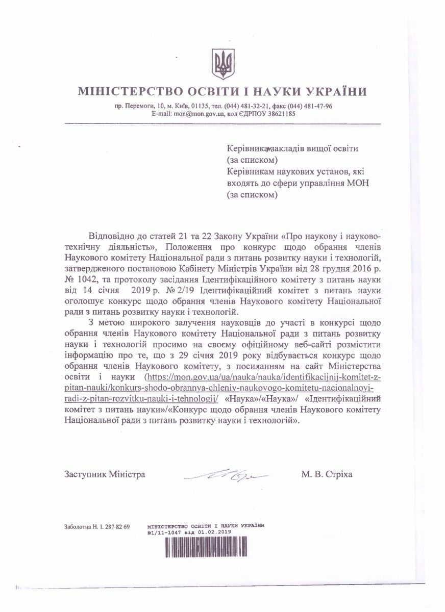 Більше інформації за посиланням https://mon.gov.ua/ua/nauka/nauka/identifikacijnij-komitet-z-pitan-nauki/konkurs-shodo-obrannya-chleniv-naukovogo-komitetu-nacionalnoyi-radi-z-pitan-rozvitku-nauki-i-tehnologij