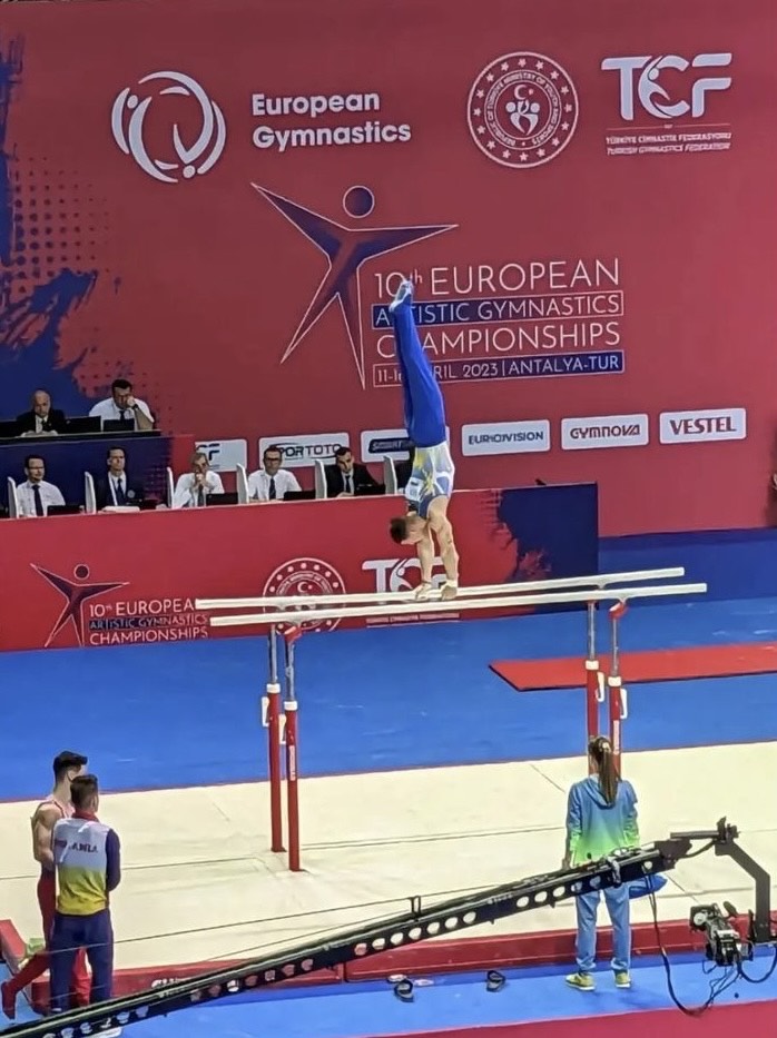 А зранку сьогодні Ілля завоював своє перше золото чемпіонату Європи у вправах на паралельних брусах, отримавши 15,166 бала і піднявши наш прапор!