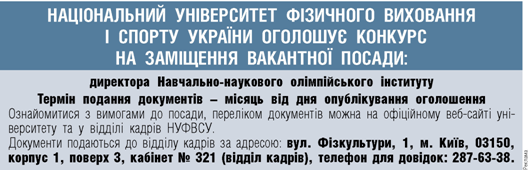 на заміщення вакантної посади директора Навчально-наукового олімпійського інституту