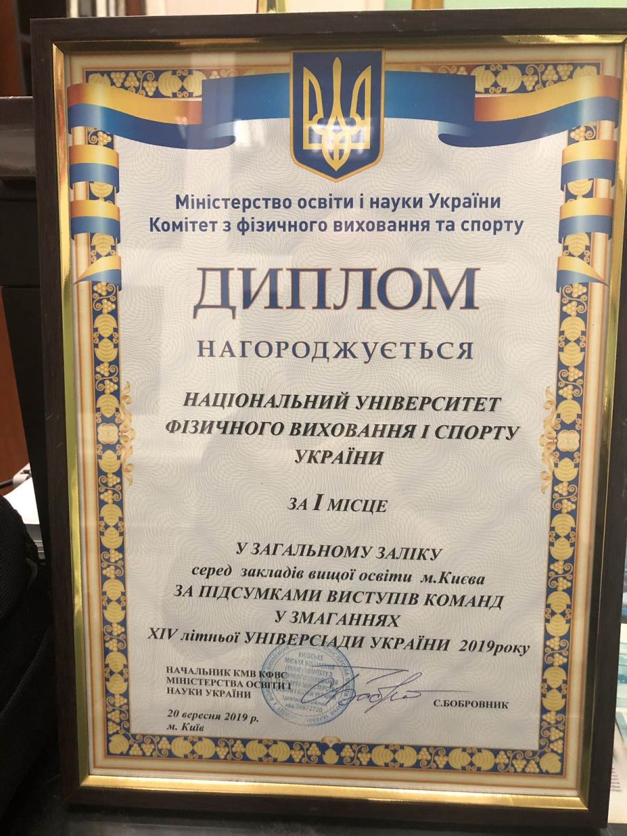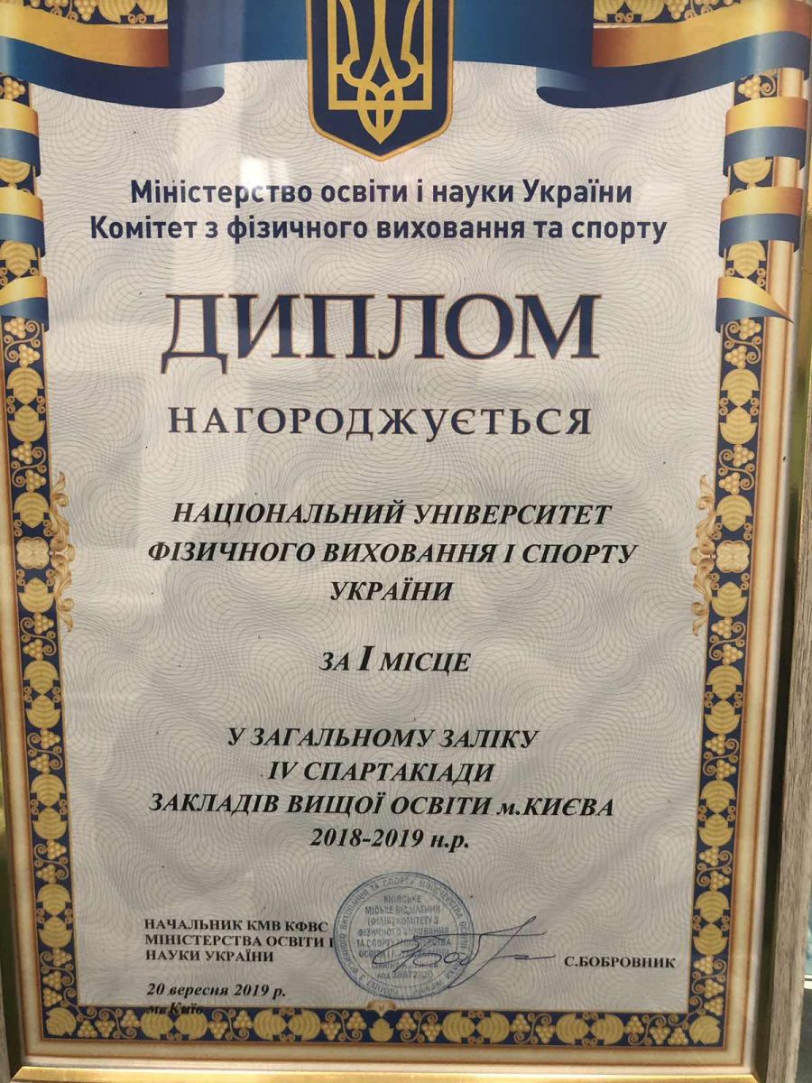 Традиційно НУФВСУ очолює рейтинги. Так, наш університет став І-м у загальному заліку серед ЗВО м. Києва за підсумками виступів команд у змаганнях XIV літньої Універсіади 2019 року та І-ми у загальному заліку IV Спартакіади ЗВО м. Києва 2018-2019 н.р.