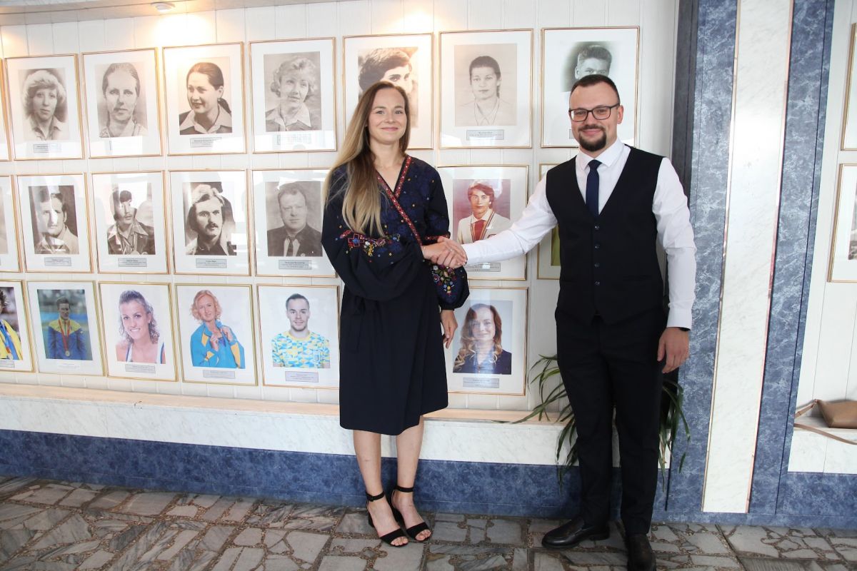 Багато років у нашому університеті в головному корпусі існує фотоалея олімпійських чемпіонів - вихованців нашого вишу. От і учора, після офіційних урочистой до Дня знань, на алеї з'явилось ще одне фото Олімпійської чемпіонки - фото Юлії Бакастової! Фотографію у присутності гостей урочисто закріпили сама чемпіонка, а також виконувач обов'яків ректора НУФВСУ Олександр ПИЖОВ та президент Національного олімпійського комітету України Вадим ГУТЦАЙТ. До речі, фотографія керманича НОК України також є на фотоалеї, адже Вадим Маркович і сам є Олімпійським чемпіоном та вихованцем нашого університету.