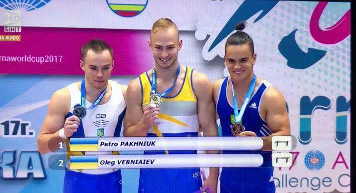 На етапі Кубка світу "World Challenge Cup" зі спортивної гімнастики у м. Варна (Болгарія) аспірант 3-го року навчання Олег Верняєв здобув срібну медаль у вправах на брусах із результатом 14.800, поступившись іншому спортсмену з України, Петру Пахнюку.