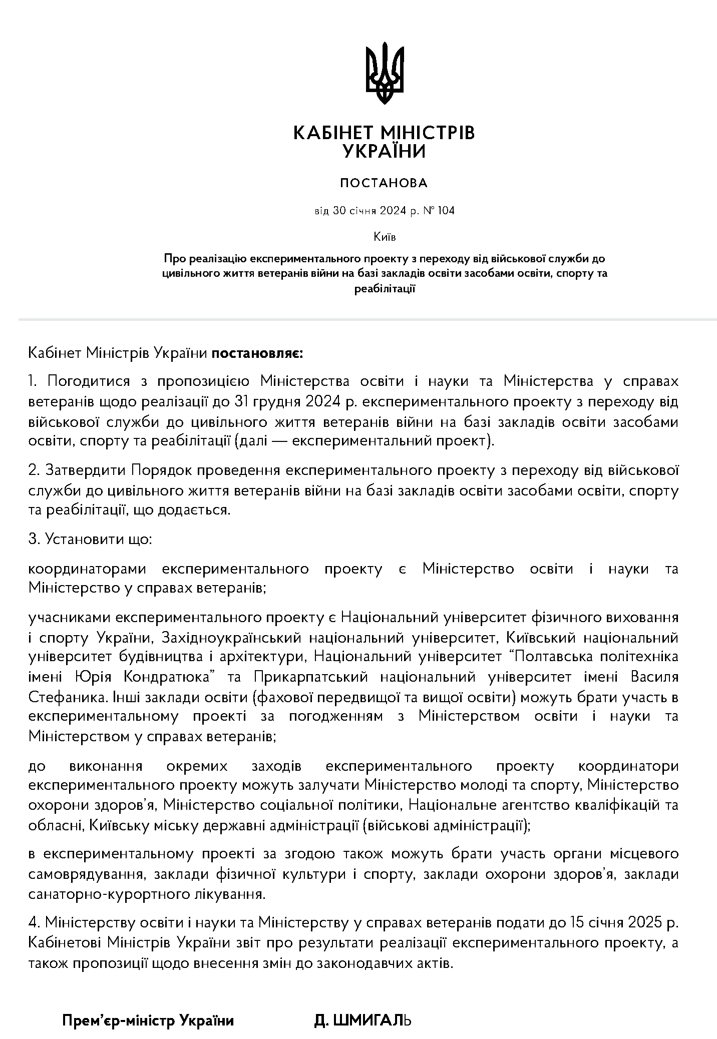 КАБІНЕТ МІНІСТРІВ УКРАЇНИ УХВАЛИВ ПОСТАНОВУ ПРО РЕАЛІЗАЦІЮ...