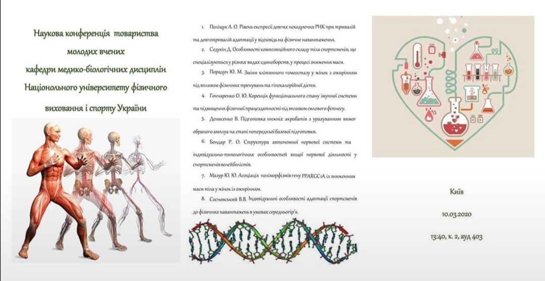 • 10 березня 2020 року відбулася Наукова конференція товариства молодих вчених кафедри медико-біологічних дисциплін НУФВСУ