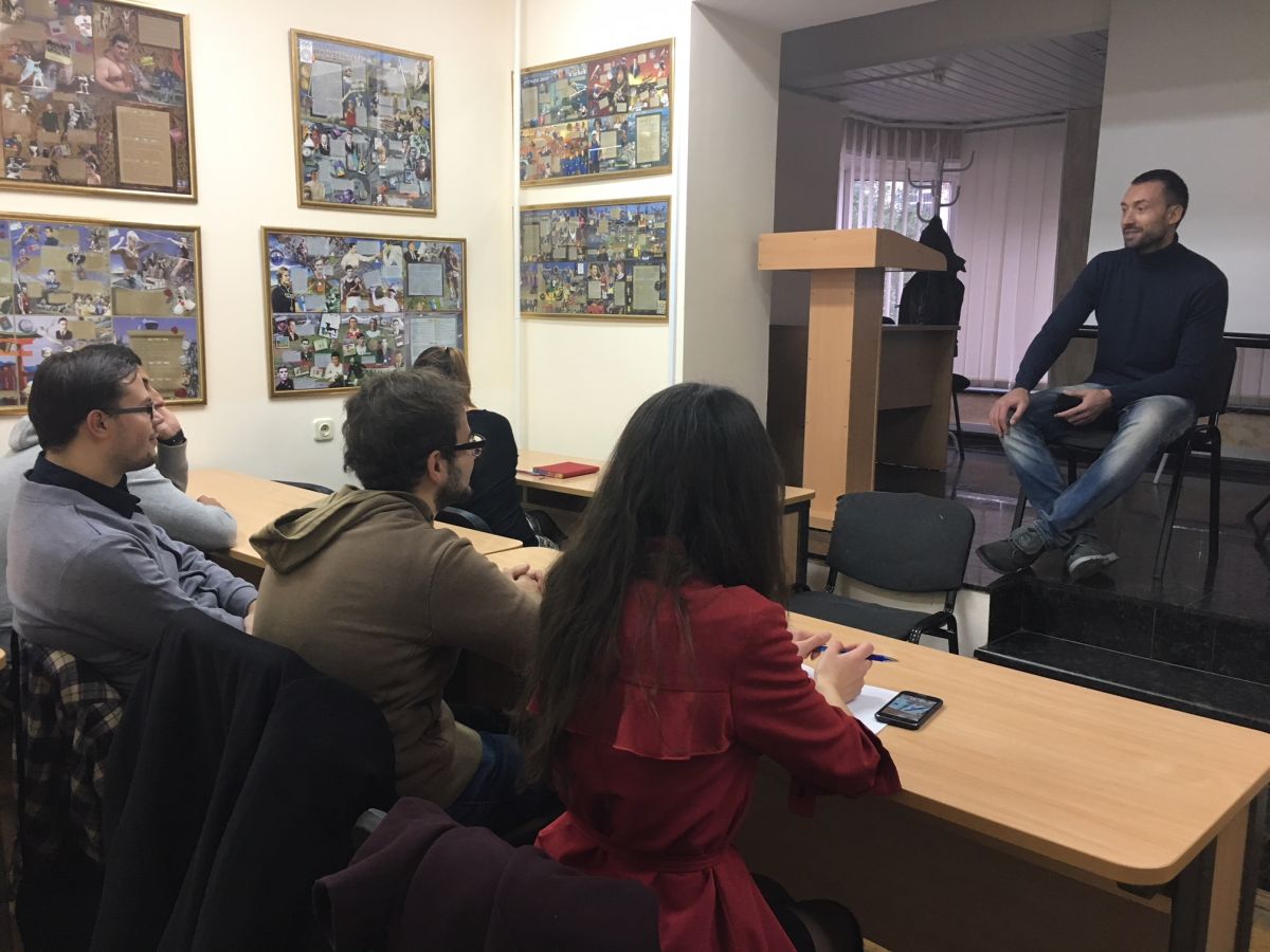 «Я дізнався, що з’явилася така магістерська програма, і захотів побачити, хто ж ці люди, подивитися їм у очі», – такими словами, посміхаючись, гість розпочав зустріч. Далі кожен студент поділився, чому обрав саме цю спеціальність. Хтось професійно займається спортом і прагне доносити його до широкого загалу, хтось уже працює журналістом, але хотів би засвоїти новий цікавий напрям, хтось – навіть арбітром. У кожного свій шлях, та всі погодилися: спорт – це свято, покликане об’єднувати людей.