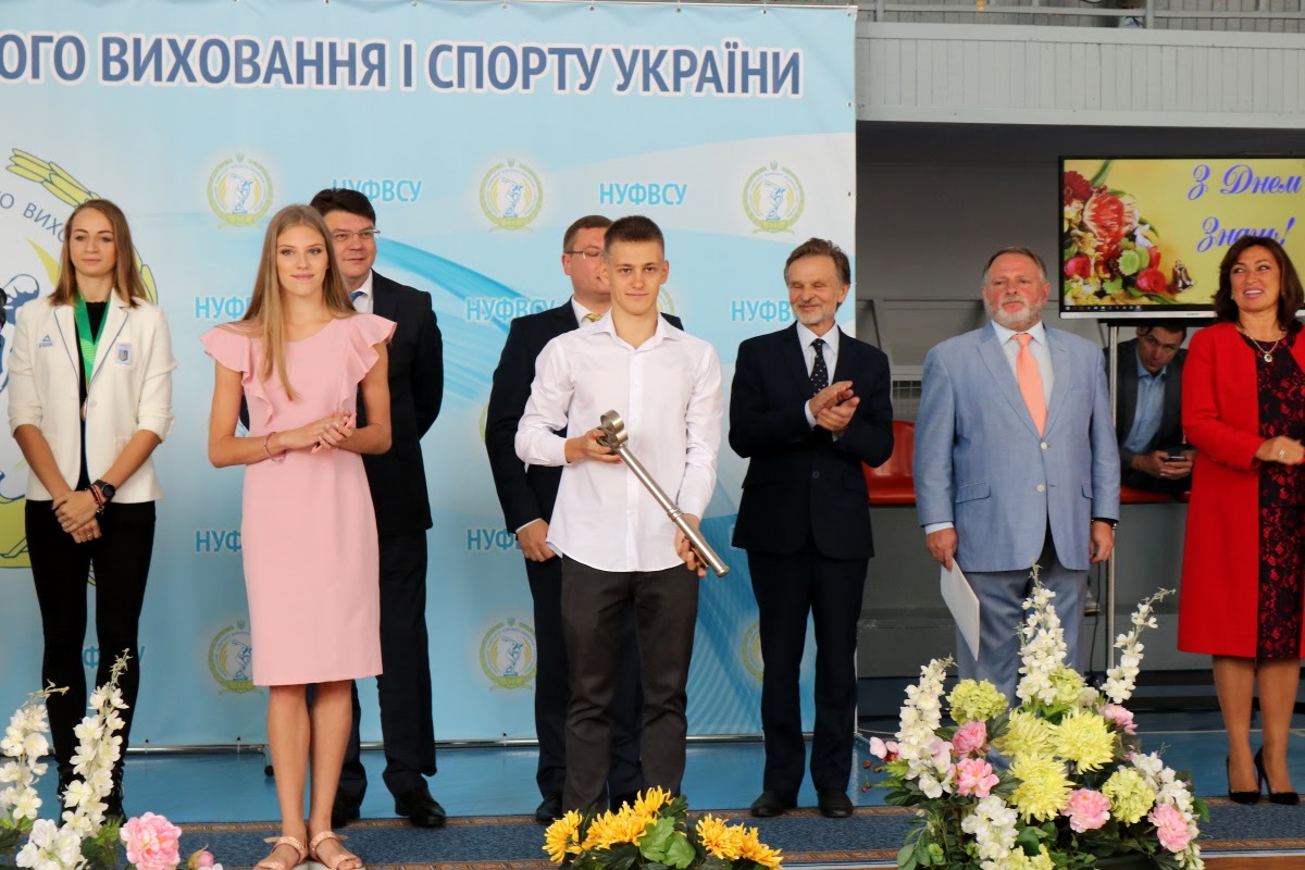 Потім, за традицією, випускники університету під супровід студентського гімну «Гаудемус» передали «Символічний Ключ Знань» студентам-першокурсникам, для вручення якого запросили цьогорічних випускників бакалаврської програми університету: багаторазову чемпіонку та призерку чемпіонатів України, Європи та світу з черлідінгу, заслуженого майстра спорту України Світлану Тимошенко; призера етапів Кубку світу, чемпіона цьогорічної Всесвітньої універсіади у Тайбеї з фехтування, майстра спорту України Дмитра Чучукала. Ключ прийняли студенти І курсу: майстер спорту України з художньої гімнастики Катаріна Бобан; чемпіон України з плавання серед юніорів, майстер спорту України Дмитро Кондратюк.