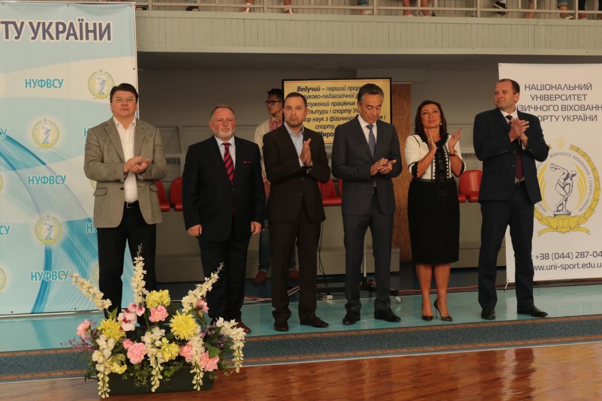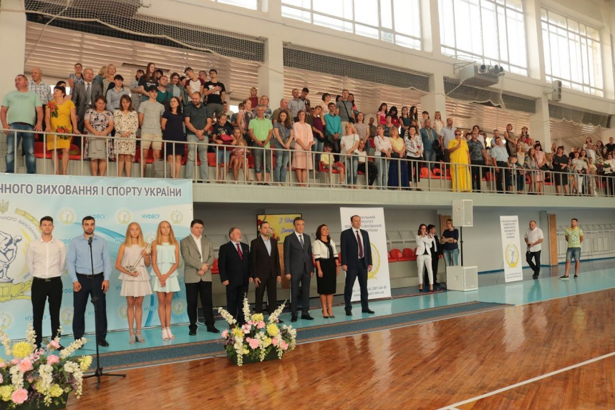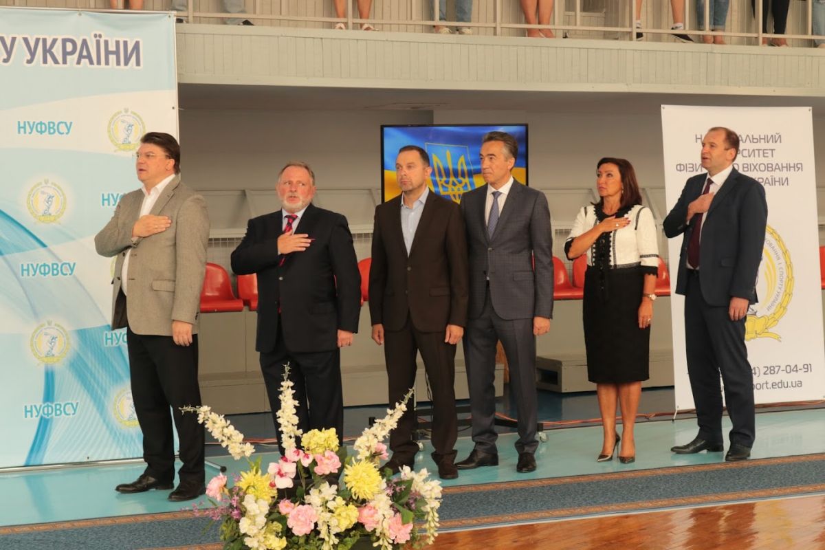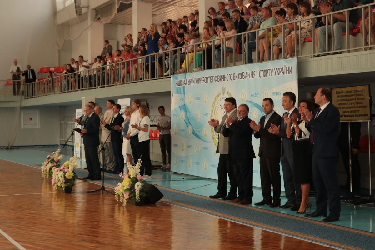 Ведучим церемонії став перший проректор з науково-педагогічної роботи, професор ДУТЧАК Мирослав Васильович, який привітав новобранців із високим званням студента Національного університету фізичного виховання і спорту України.  Мирослав Васильович розповів широкому загалу, що наш університет має понад 88-річну історію й поправу вважається флагманом у сфері вищої галузевої освіти. За цей час підготовлено понад 30 тисяч спортивних тренерів, вчителів фізичного виховання, фахівців з фізичної реабілітації, фізичної терапії, ерготерапії, спортивних менеджерів, фахівців з фітнесу і рекреації, туризму. Наші випускники успішно працюють у вітчизняних і зарубіжних клубах, інших закладах. Проректор із приємністю відзначив, що студенти нашого університету є незмінними переможцями Всеукраїнських студентських олімпіад з фахових дисциплін та конкурсів наукових робіт з фізичного виховання і спорту, фізичної реабілітації. Перший проректор зауважив, що специфіка вишу обумовлює велику увагу до спортивної роботи: наші студенти та випускники завоювали 299 олімпійських нагород, серед яких 113 золотих медалей, зазначив і той факт, що університет традиційно є переможцем Всеукраїнської універсіади серед усіх закладів вищої освіти. Студенти університету роблять найбільший внесок у медальну скарбничку національної збірної команди на Всесвітніх Універсіадах. Україна уже впродовж 25 років входить в десятку кращих націй світу за підсумками літніх Всесвітніх Універсіад.
