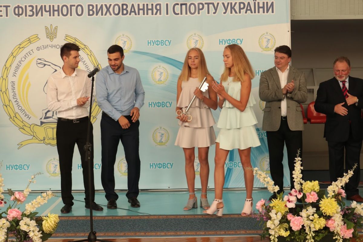 Наприкінці урочистостей за традицією випускники університету, а саме –  чемпіон Європи з більярдного спорту цього року, володар нагороди «Зірка спортивного року» Спортивного комітету України, майстер спорту України міжнародного класу з більярдного спорту Віталій ПАЦУРА та фіналіст Всесвітньої серії з боксу у складі команди «Українські Отамани», володар Кубку України, багаторазовий срібний призер чемпіонатів України, майстер спорту України міжнародного класу з боксу Ростислав АРХИПЕНКО, передали «Символічний Ключ Знань» студентам-першокурсникам, двом сестрам, срібним призеркам юніорського чемпіонату Європи з синхронного плавання, майстрам спорту України Софії та Катерині СТУЛЄНКОВИМ.