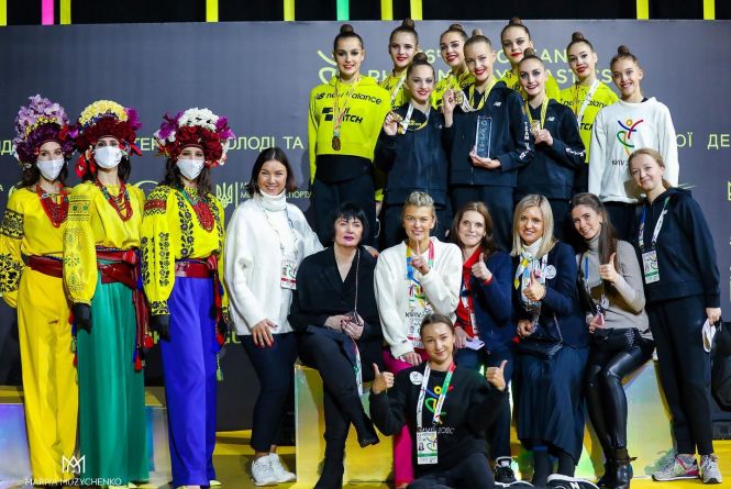 За підсумками чотирьох днів змагань спортсменки збірної України здобули 3 золоті медалі, 2 срібні та 1 бронзову. Нагороди найвищого ґатунку збірна України здобула в командній першості, у груповій вправі з п'ятьма м'ячами і ще одне золото взяла Поліна Каріка за вправу з м'ячем серед юніорів. Срібло виграли у фіналі групової вправи з обручами та булавами, а також ІІ-ге місце зайняла Карина Сидорак за виступ зі стрічкою серед юніорів. Бронзову медаль у багатоборстві групових вправ здобули Маріола Боднарчук, Марічка Височанська (студентки ІІ курсу кафедри спортивніх видів гімнастики), Валерія Юзвяк, Анастасія Возняк (випускниці НУФВСУ) та Діана Баєва.