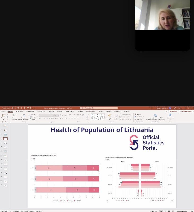 Із доповіддю «ГІГІЄНІЧНІ АСПЕКТИ СТАЛОГО РОЗВИТКУ УКРАЇНИ» виступила заступниця директора з науково-практичної роботи Державної установи «Інститут громадського здоров’я ім. О. М. Марзєєва Національної академії медичних наук України», доктор медичних наук, професор Олена ТУРОС.