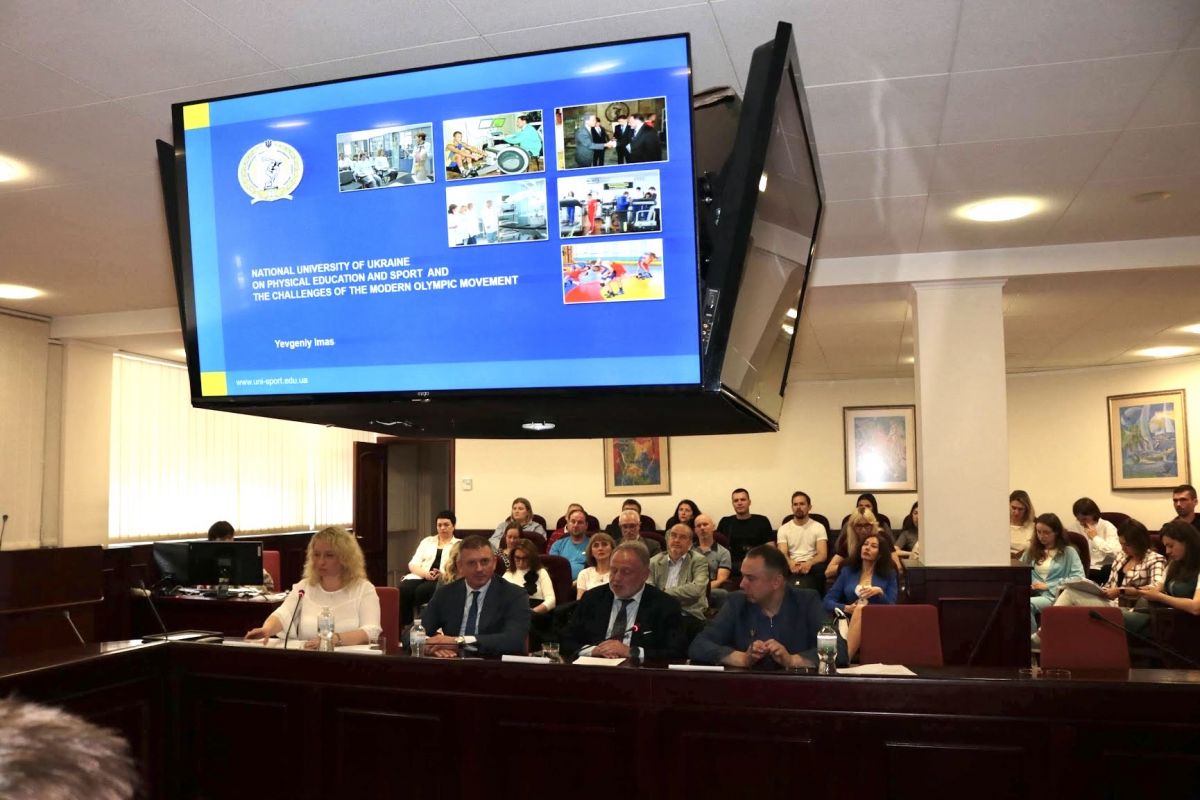 Також із пленарною доповіддю на тему «НАЦІОНАЛЬНИЙ УНІВЕРСИТЕТ ФІЗИЧНОГО ВИХОВАННЯ І СПОРТУ ТА ВИКЛИКИ СУЧАСНОГО ОЛІМПІЙСЬКОГО РУХУ» виступив ректор Національного університету фізичного виховання і спорту України, президент Спортивної студентської спілки України, голова Комісії НОК України «Сталий розвиток і спадщина», професор Євгеній ІМАС. Так, очільник нашого університету звернув увагу учасників на понад 90-річній історії нашого закладу вищої освіти та здобутки його вихованців на міжнародних спортивних аренах, зокрема і на олімпійській. Євгеній Вікторович зупинився і на тому, що кар’єра спортсмена – короткочасна, потрібно думати про майбутнє життя поза ареною. З цією метою ми реалізуємо концепт «наскрізного навчання спортсмена» Акцент у своїй доповіді пан Імас зробив і на наслідках повномасштабного вторгнення, а саме на стрімкому збільшенню кількості ветеранів та ветеранок і суттєвим кроком для розвитку нашого Університету є визнання його основним учасником у реалізації експериментального проєкту з їхнього переходу від військової служби до цивільного життя на базі закладів освіти засобами освіти, спорту та реабілітації, відповідно до Постанови КМУ.  Ректор зазначив, що університет активно розвиває напрям інформаційних технологій, кіберспорту. Одним з перших закладів вищої освіти виступив з ініціативою підготовки кадрів з кіберспорту, впровадження штучного інтелекту в освіту. Фахівцями університету видано колективну монографію «Кіберспорт», готується низка навчальної та навчально-методичної літератури для забезпечення освітнього процесу.