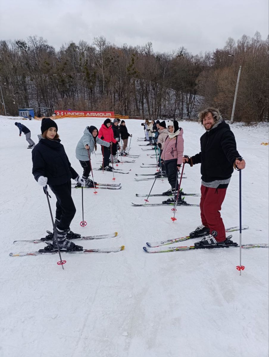 На заняттях студенти ознайомилися з вибором гірськолижного спорядження, технікою безпеки під час занять, а також з елементами техніки спусків та підйомів на гірських лижах.