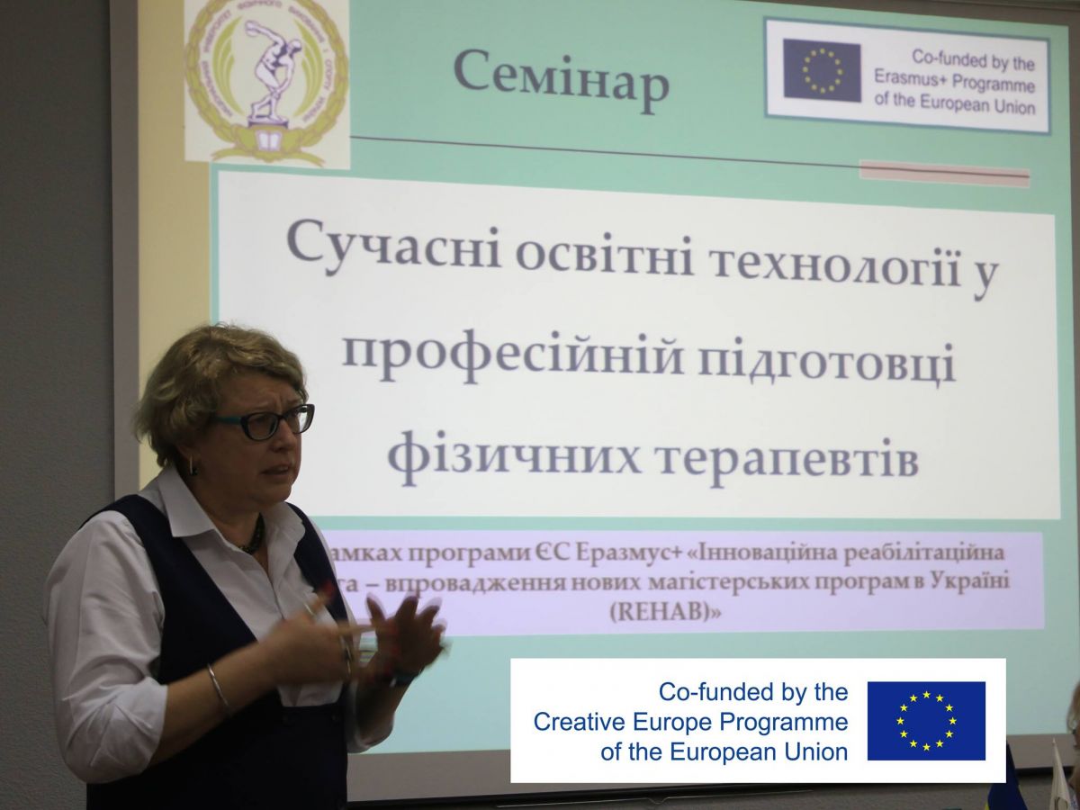 З метою реалізації спільної програми ЄС Еразмус+ «Інноваційна реабілітаційна освіта - впровадження нових магістерських програм в Україні (REHAB)» 19 квітня 2019 року у Національному університеті фізичного виховання і спорту України відбувся семінар «Сучасні освітні технології у професійній підготовці фізичних терапевтів», в якому брали участь представники університетів партнерів з України, координатор проекту від України М.Р. Мруга, менеджер з аналітичної роботи НЕО в Україні Ж.В. Таланова, Голова правління ГО "Українська Асоціація Фізичної Терапії" С.Ю. Кобелєв.