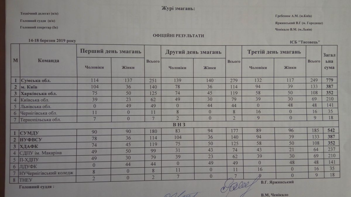 У підсумковому заліку збірна НУФВСУ з лижних гонок набрала 387 очок та посіла друге місце: