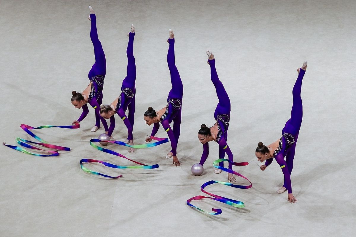 Срібло здобула наша команда з художньої гімнастики у груповому багатоборстві.