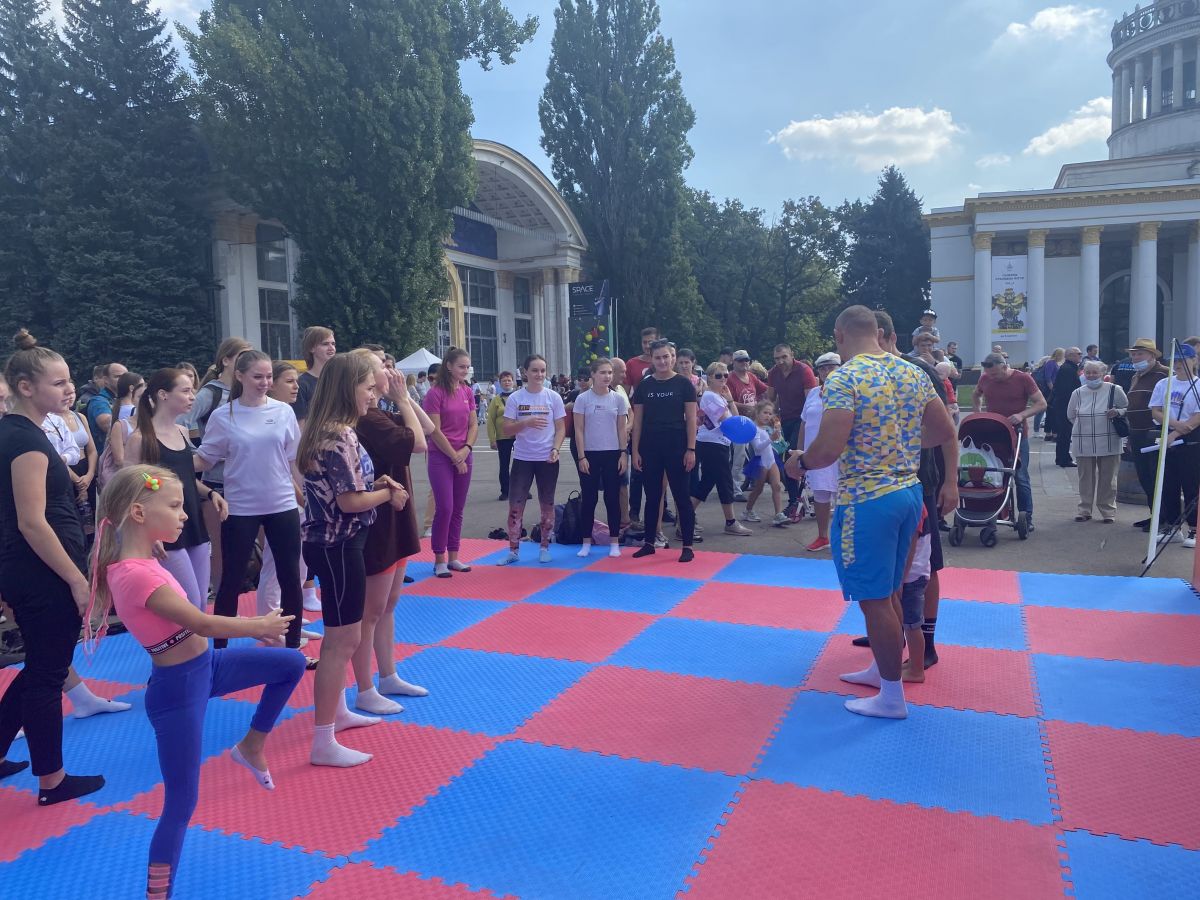 Найбільша кількість охочих долучилась до заходу на території ВДНГ, де разом із представниками Президентської програми «Активні парки - здорова нація» брали участь у руханці, майстер-класах тощо.