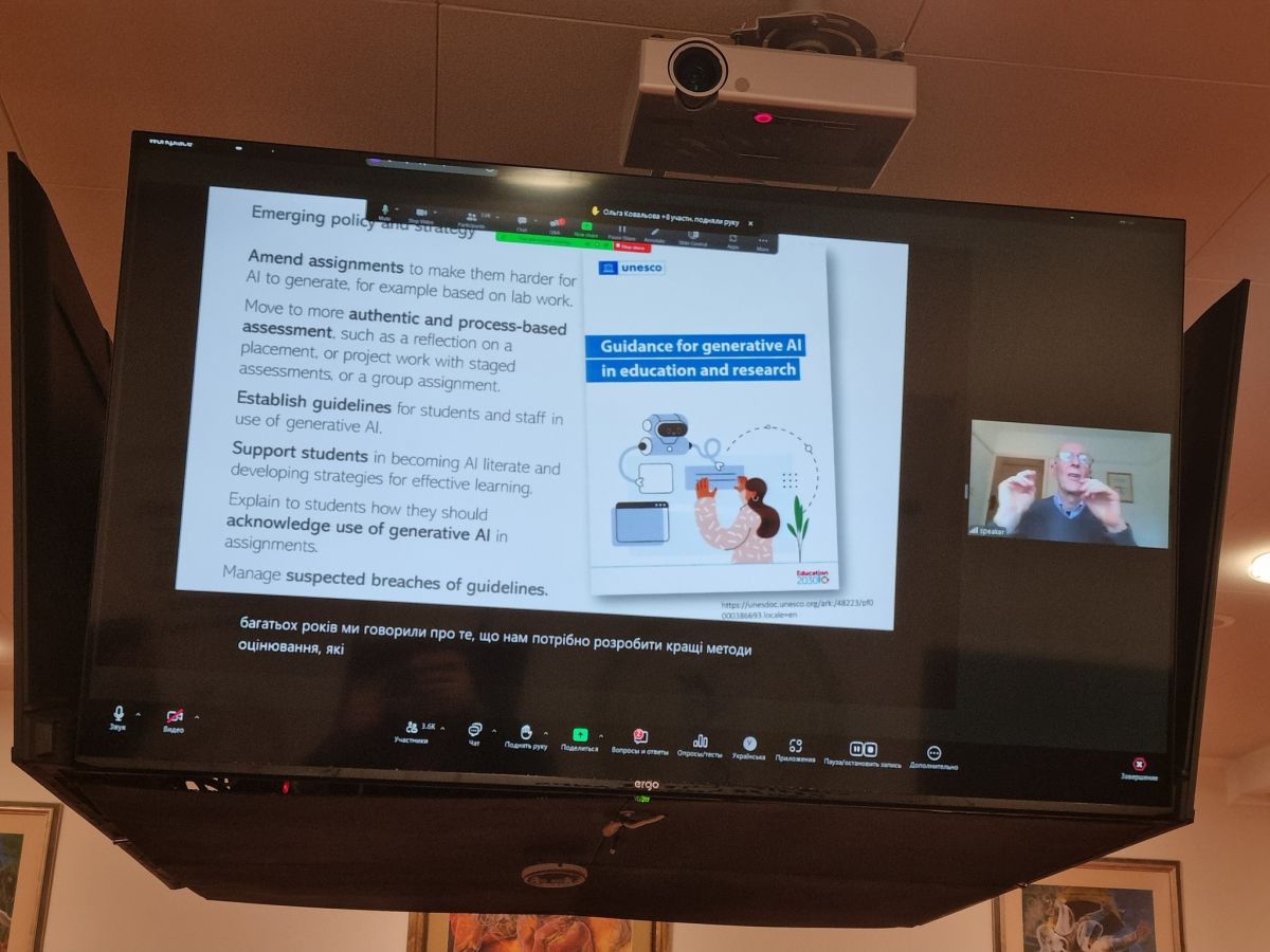 Професор Шарплз підтвердив, що штучний інтелект — це неймовірна технологія, яка буде невід’ємною частиною освітнього процесу, незалежно від бажання його учасників. Жваві обговорення наприкінці лекції дали змогу вести діалог із провідним світовим експертом та поставити найактуальніші питання. Ми обов'язково здійснимо розбір лекції та відповідей на питання, які озвучив професор, і підготуємо матеріал, який буде опубліковано для широкого загалу. Продовжуємо рухатися вперед у напрямку інтеграції штучного інтелекту в освітній процес, зберігаючи академічну доброчесність та покращуючи якість освіти.