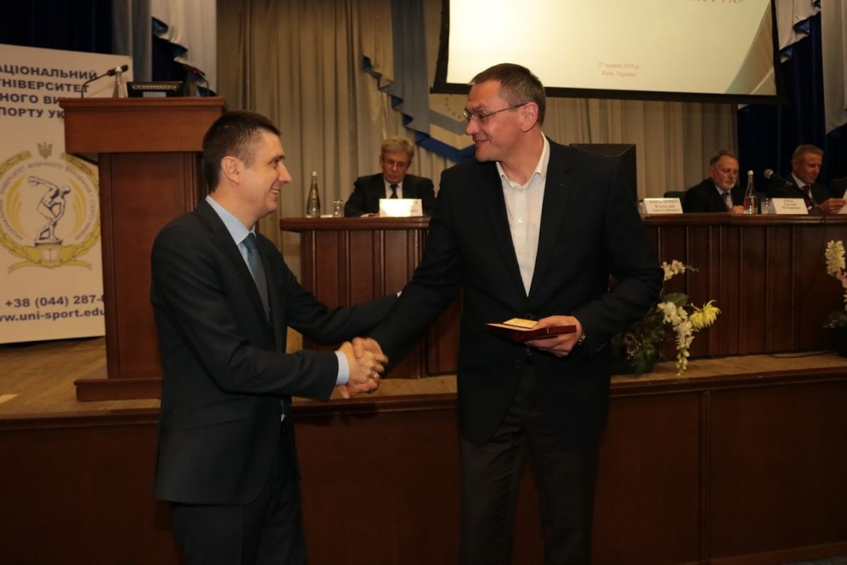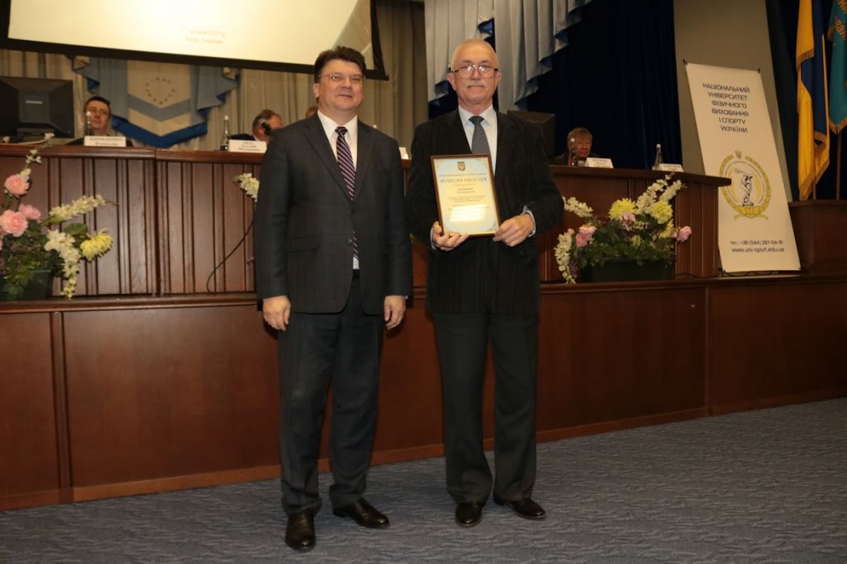 За значний особистий внесок у розвиток національної освіти, навчання і виховання підростаючого покоління, у підготовку висококваліфікованих спеціалістів та наукових кадрів, за багаторічну сумлінну працю президент Національної академії педагогічних наук України Василь Кремень медаллю «Ушинський К.Д.» нагородив в.о.ректора НУФВСУ Євгенія Імаса.