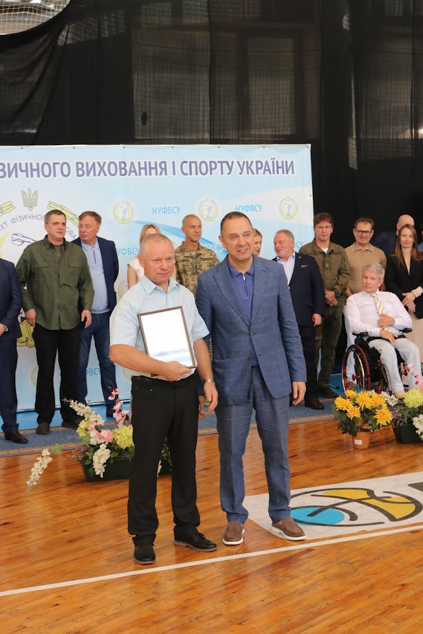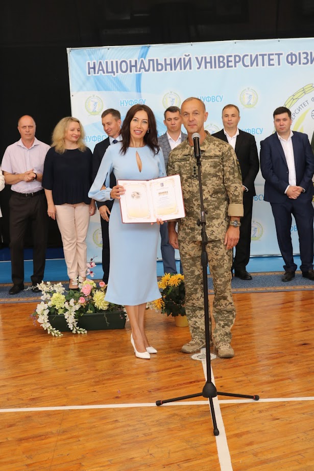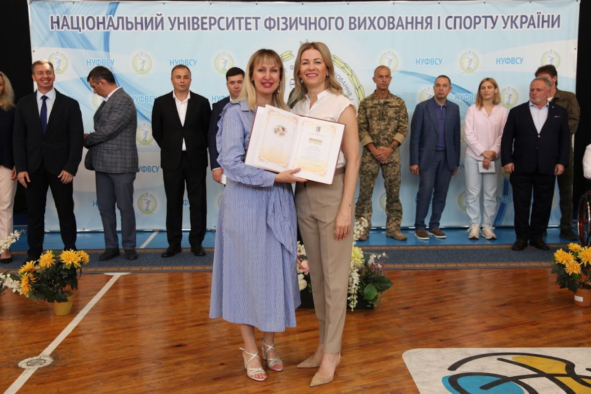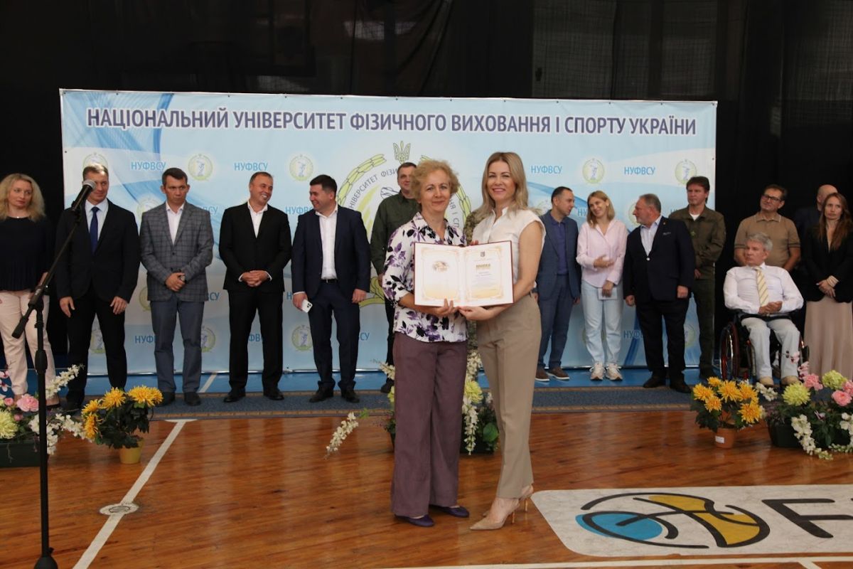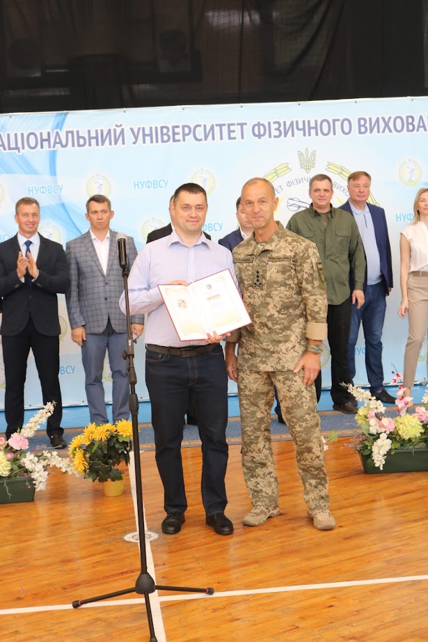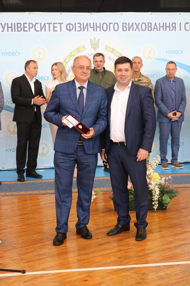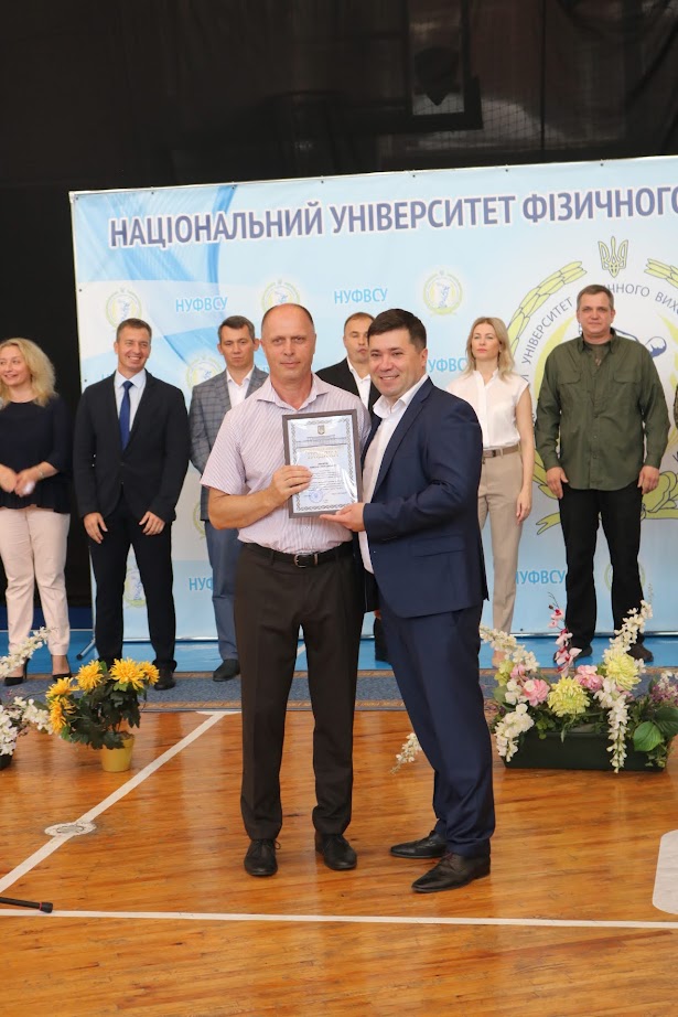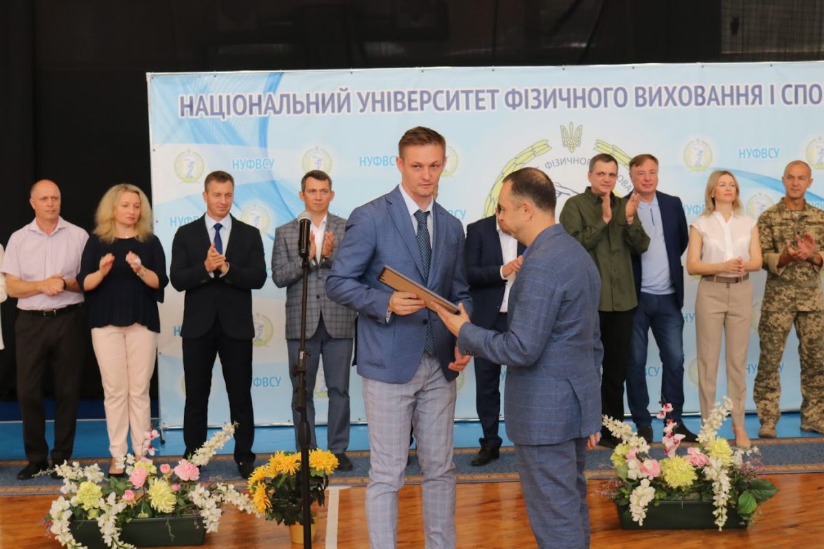 У День Знань, 1 вересня 2023 року, науково-педагогічні працівники НУФВСУ та Олімпійського фахового коледжу імені І. Піддубного отримали державні нагороди від представників влади, які завітали в університет на свято.