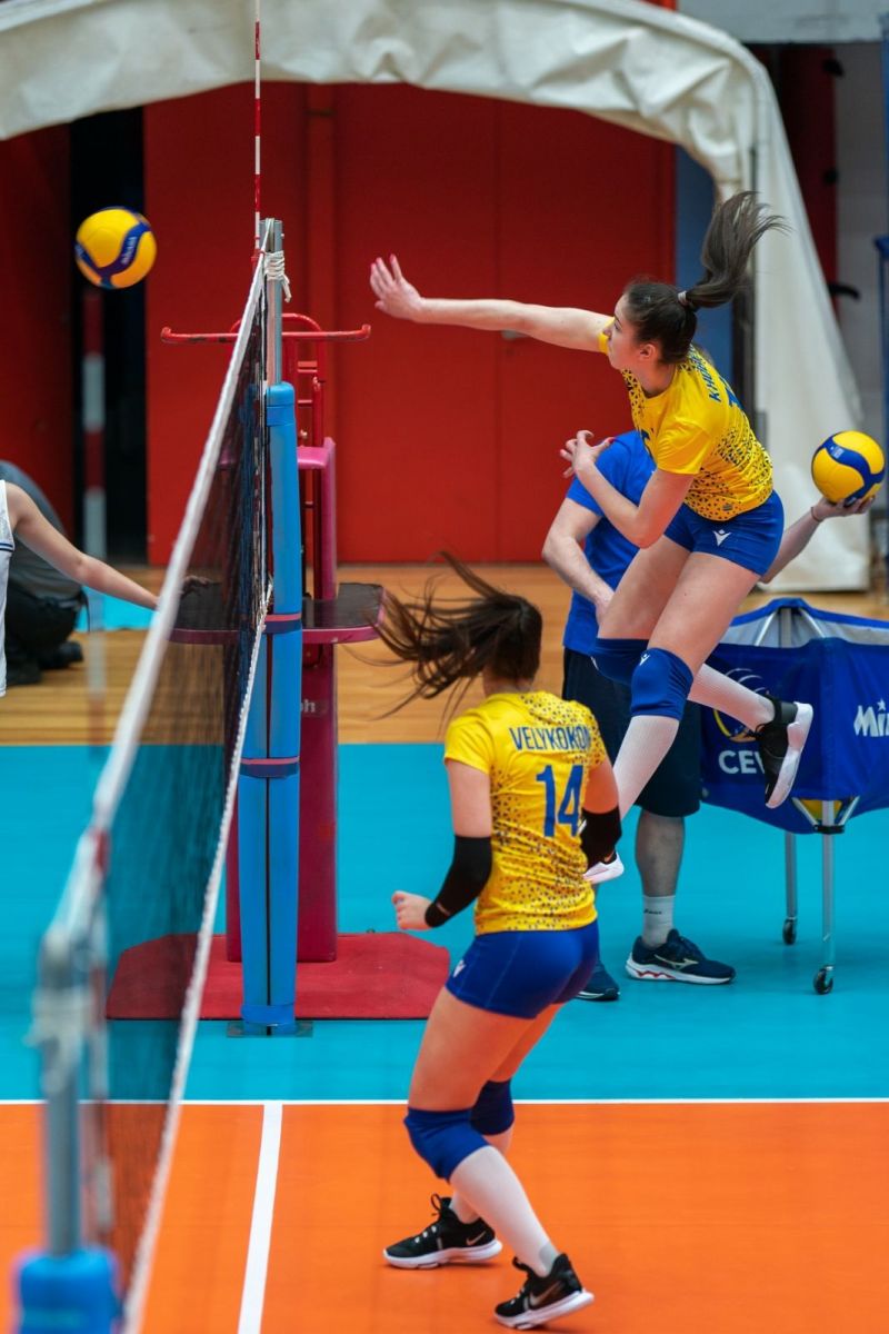 У другому кваліфікаційному раунді національна збірна України достойно відіграла матч із Швеції та ,нажаль, програла його з рахунком 2:3. Плотім дівчата перемогли команди Португалії з рахунком 3:0 та Грузії 3:0 (25:6; 25:19; 25:9).