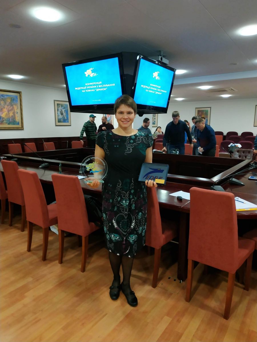 • ФедераціяУкраїни з веслування на човнах «Дракон» визнало її переможницею конкурсу "Краща спортсменка року 2018 з веслування на човнах «Дракон».