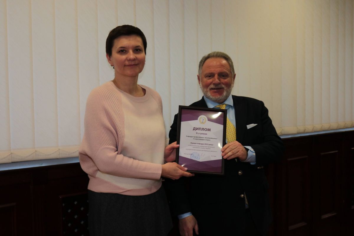 •  2 місце - професійного, неолімпійського та адаптивного спорту (завідувач кафедри Кропивницька Т. А.);