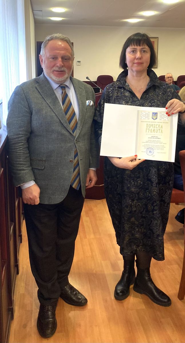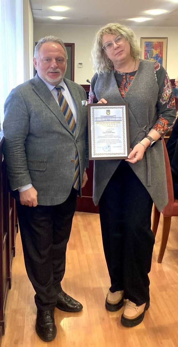 Грамоту МОН Євгеній Вікторович вручив завідувачу кафедри фізичної терапії те ерготерапії, професору ОЛЕНІ БОРИСІВНІ ЛАЗАРЄВІЙ.