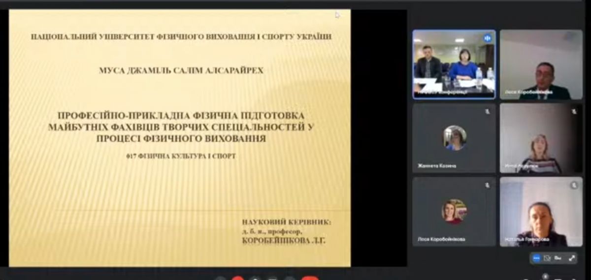4 листопада 2022 р. на засіданні спеціалізованої вченої ради ДФ 03.017.2022 Національного університету фізичного виховання і спорту України відбувся захист дисертаційної роботи Муса Джаміль Салім Алсарайрех на тему: «Професійно-прикладна фізична підготовка майбутніх фахівців творчих спеціальностей у процесі фізичного виховання, поданої на здобуття ступеня доктора філософії за спеціальністю 017 Фізична культура і спорт.