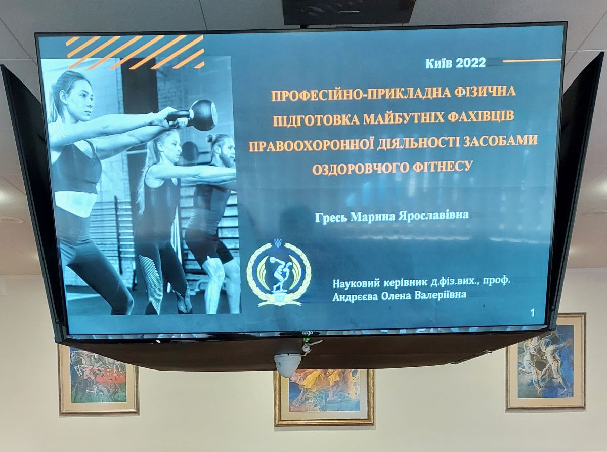 19 грудня 2022 р. на засіданні спеціалізованої вченої ради ДФ 05.017.2022 Національного університету фізичного виховання і спорту України відбувся захист дисертаційної роботи Гресь Марини Ярославівни на тему: «Професійно-прикладна фізична підготовка майбутніх фахівців правоохоронної діяльності засобами оздоровчого фітнесу», поданої на здобуття ступеня доктора філософії за спеціальністю 017 Фізична культура і спорт.