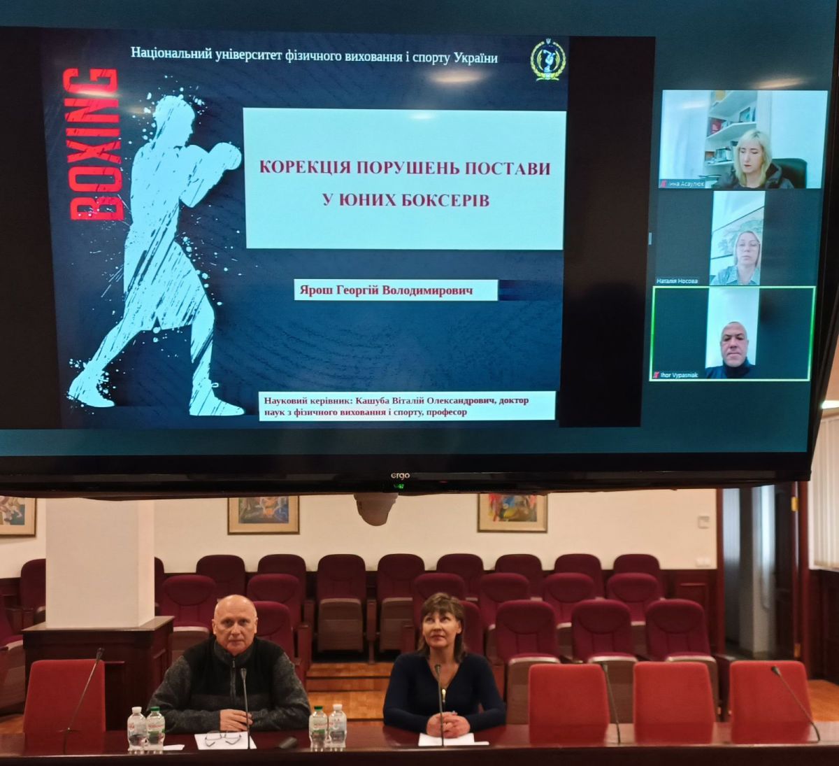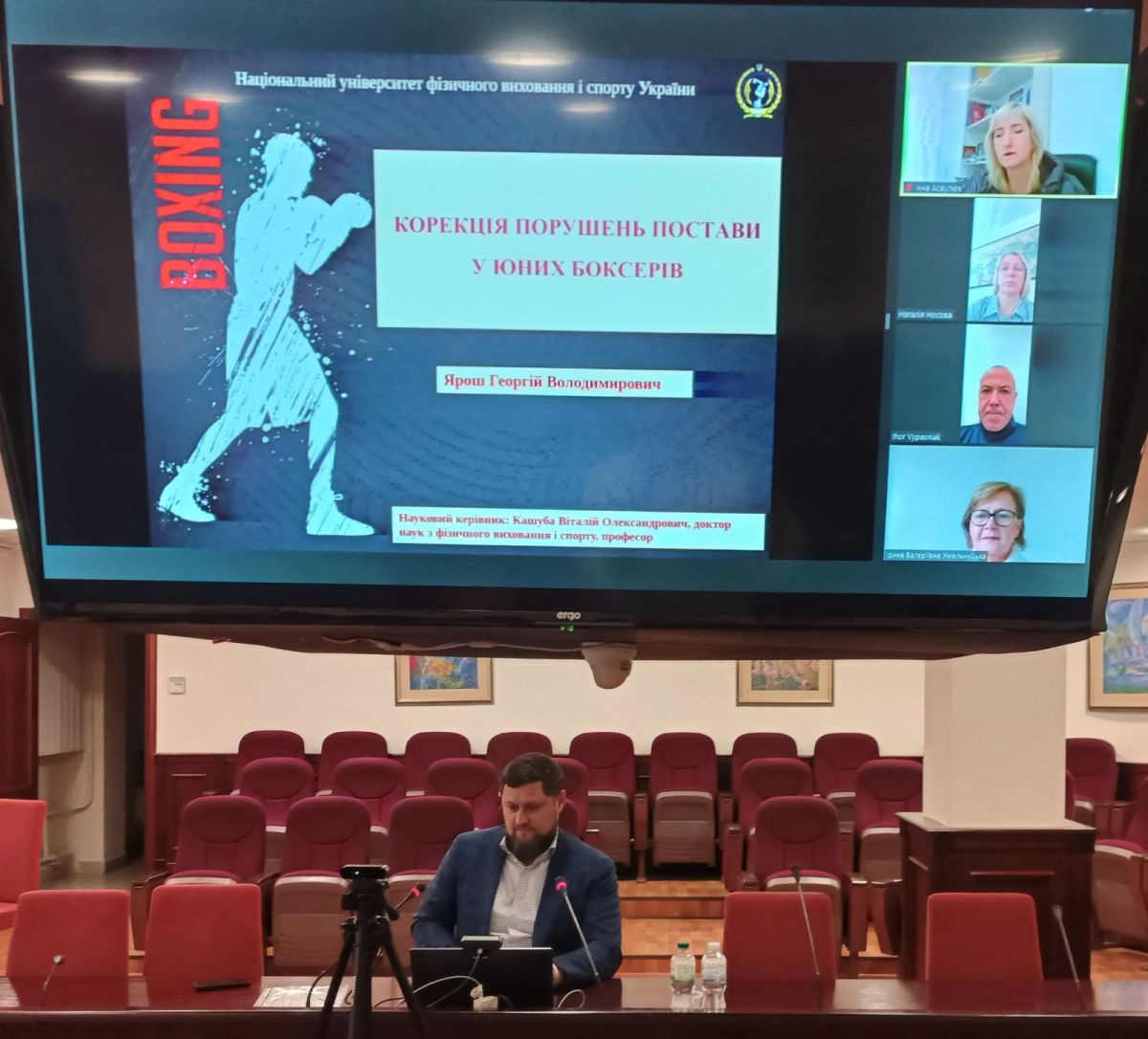 31 жовтня 2023 р. на засіданні спеціалізованої вченої ради ДФ 24.017.19 Національного університету фізичного виховання і спорту України відбувся захист дисертаційної роботи Яроша Георгія Володимировича на тему: «Корекція порушень постави у юних боксерів», поданої на здобуття ступеня доктора філософії за спеціальністю 017 Фізична культура і спорт.
