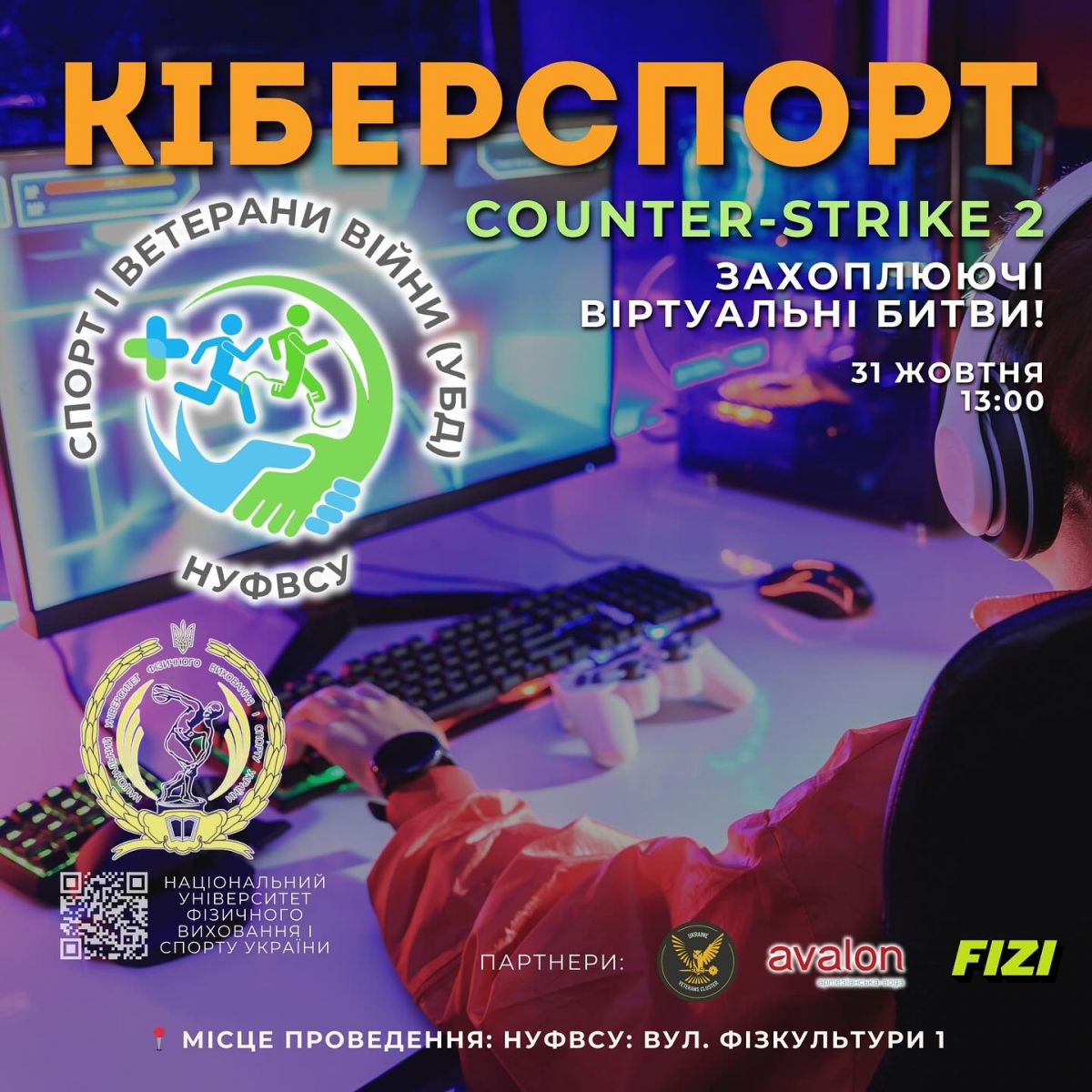 Національний університет фізичного виховання і спорту України продовжує проект «Спорт і ветерани війни (УБД)» і з радістю оголошує про проведення турніру  з КІБЕРСПОРТУ (COUNTER-STRIKE 2)!