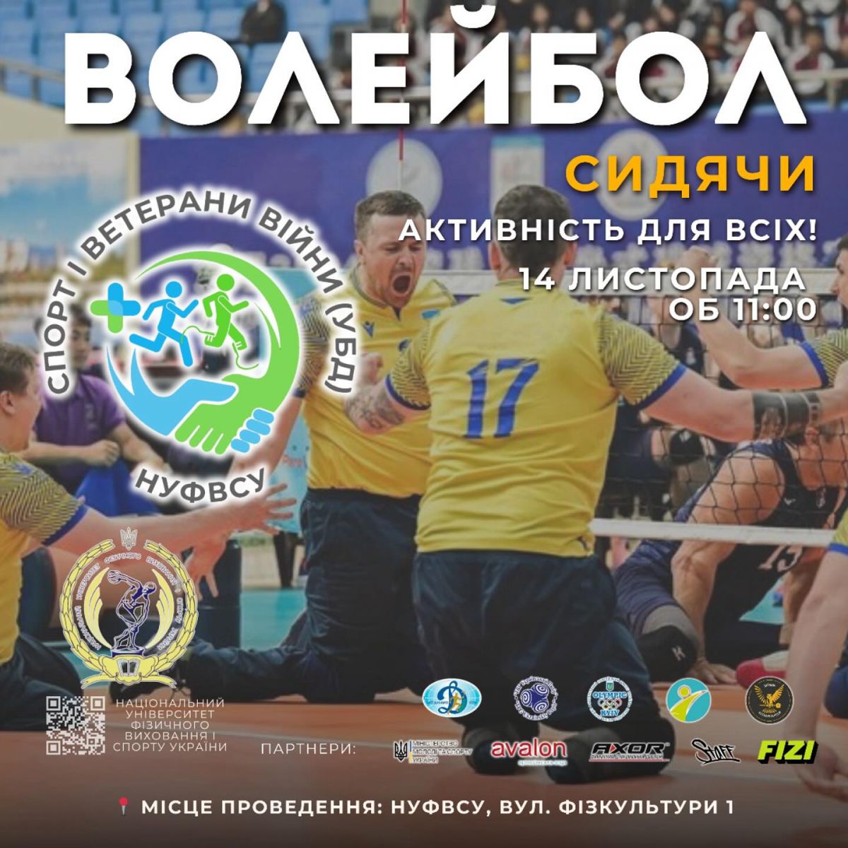 Запрошуємо всіх на захопливий спортивний захід – змагання з ВОЛЕЙБОЛУ СИДЯЧИ для ветеранів та учасників бойових дій, які відбудуться в рамках проекту «Спорт і ветерани війни (УБД)».