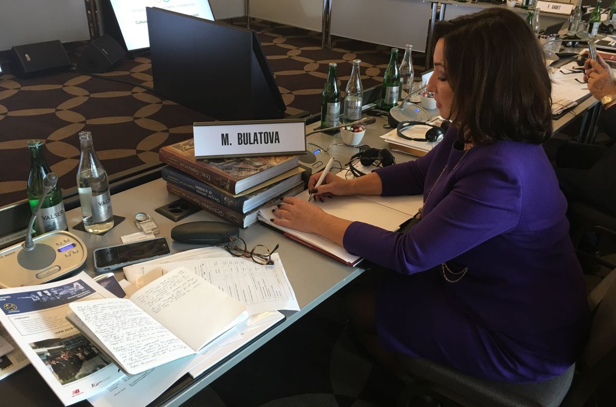 Марія Булатова у своєму виступі висвітлила стан роботи з олімпійської освіти, культури та збереження олімпійської спадщини в Україні; доповіла про заходи, що відбулися в Україні з нагоди 180-річниці від дня народження генерала  О. Д. Бутовського; презентувала книгу для дітей дошкільного віку «Олімпійські ігри. Подорож у давнину»,  нові видання «Бокс», «Боротьба», «Фігурне катання», які поповнили серію «Енциклопедії олімпійських видів спорту» у 2018 р. Цей проект НОК України був із великою зацікавленістю сприйнятий та отримав схвалення Комісії.