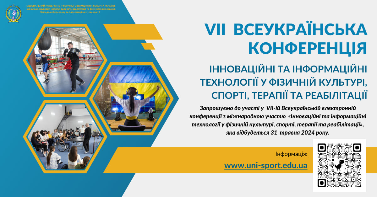 • VIII Всеукраїнська електронна конференція з міжнародною участю «ІННОВАЦІЙНІ ТА ІНФОРМАЦІЙНІ ТЕХНОЛОГІЇ У ФІЗИЧНІЙ КУЛЬТУРІ, СПОРТІ, ТЕРАПІЇ ТА РЕАБІЛІТАЦІЇ»