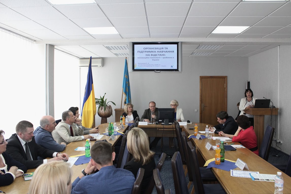 Доктор педагогічних наук, професор, генеральний директор LTD «Акцент», завідувач лабораторії електронних навчальних ресурсів Інституту ПТО НАПН України, професор кафедри філологічних, суспільно-гуманітарних та мистецьких дисциплін КВНЗ КОР «Академія неперервної освіти» Карташова Любов Андріївна спільно з колегою, кандидатом фізико­математичних наук, доцентом, головним науковим консультантом LTD «Акцент», доцентом кафедри математики, інформатики та методики навчання Київського національного університету імені Тараса Шевченка, завідувачем лабораторії навчання інформатики Інституту педагогіки НАПН України Лапінським Віталієм Васильовичем, ознайомила аудиторію з інформаційними технологіями, що використовуються для організації та підтримки навчання на відстані; продемонструвала інтерфейс web-інструментарію, продемонструвала можливості цієї системи навчання, довела зручність, мобільність та її доступність в організації процесу навчання студентів.