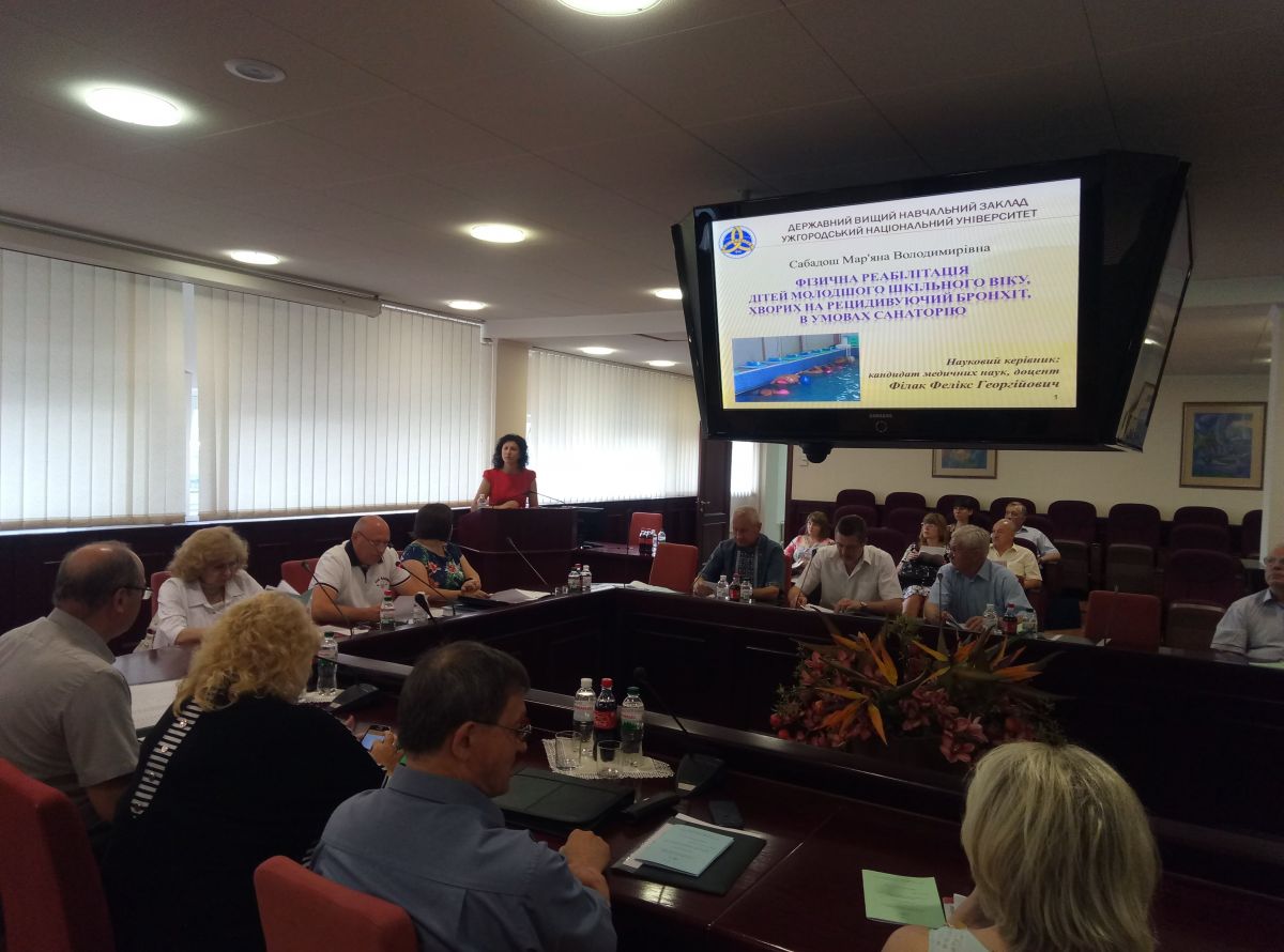 • Сабадош Мар’яни Володимирівни на тему «Фізична реабілітація дітей молодшого шкільного віку, хворих на рецидивуючий бронхіт, в умовах санаторію» на здобуття наукового ступеня кандидата наук з фізичного виховання та спорту за спеціальністю 24.00.03 – фізична реабілітація;