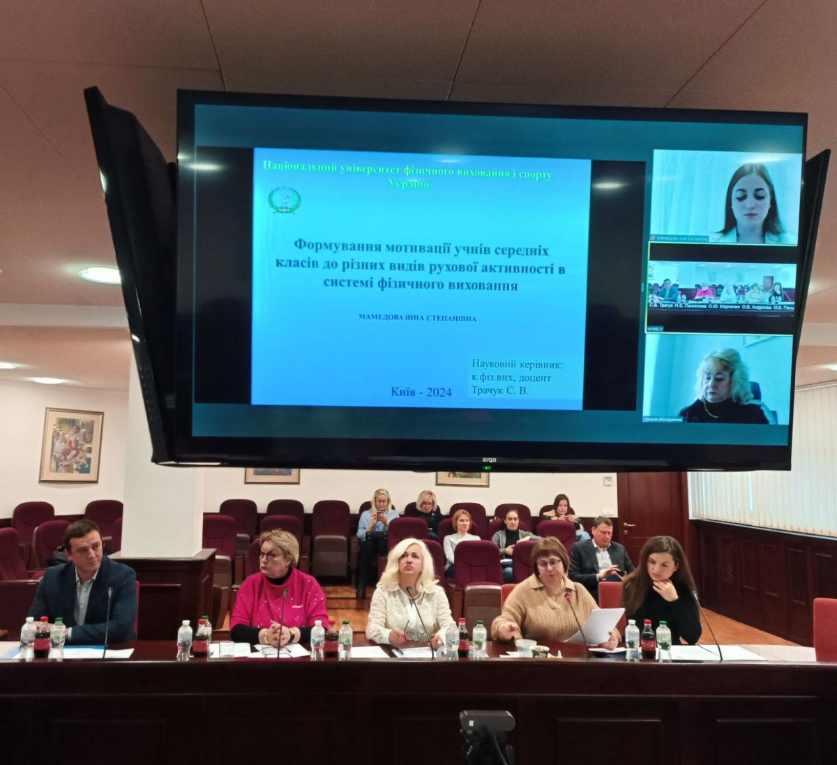 2 лютого 2024 р. на засіданні спеціалізованої вченої ради ДФ 24.017.05 Національного університету фізичного виховання і спорту України відбувся успішний захист дисертаційної роботи Мамедової Інни Степанівни на тему: «Формування мотивації учнів середніх класів до різних видів рухової активності в системі фізичного виховання», поданої на здобуття ступеня доктора філософії за спеціальністю 017 Фізична культура і спорт.