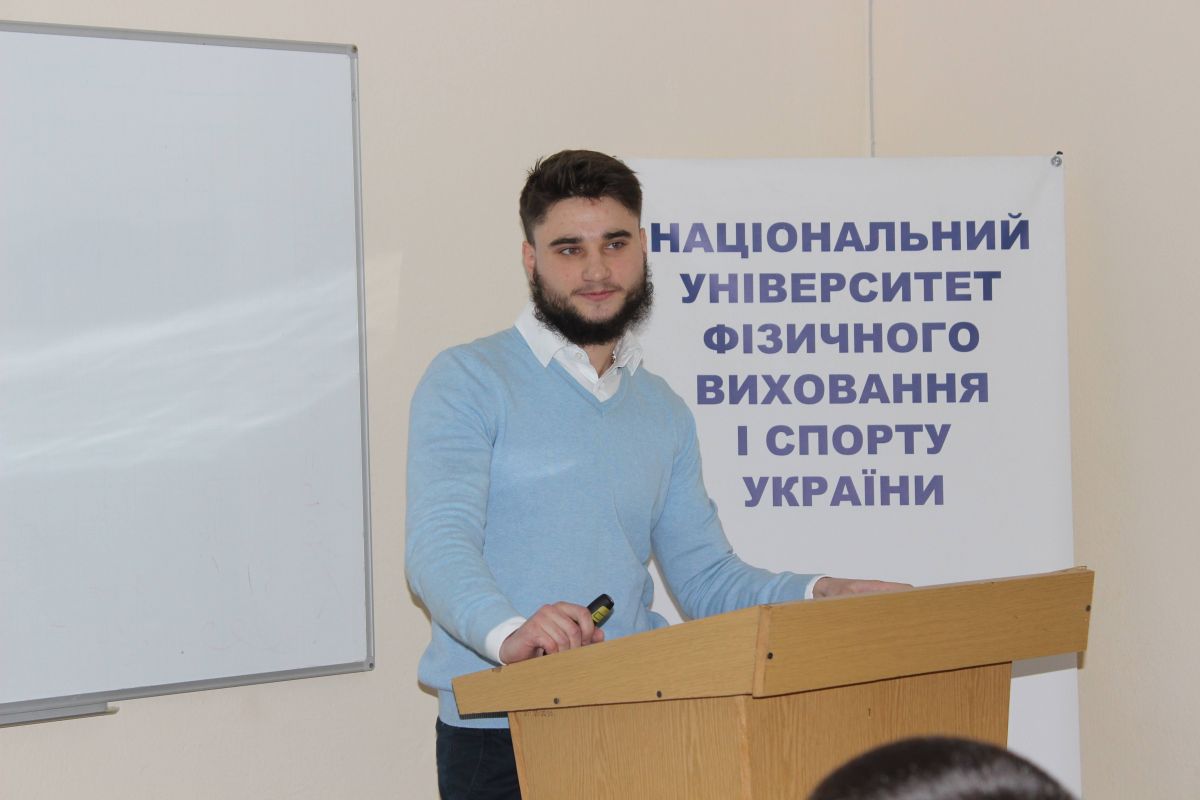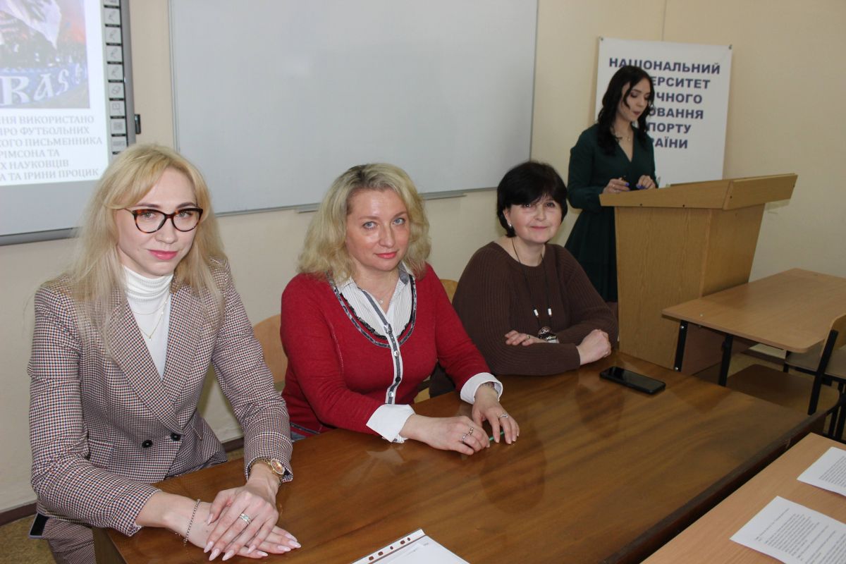 З вітальними словами виступили: проректор з науково-педагогічної роботи НУФВСУ Ольга Борисова; завідувач відділу докторантури, аспірантури Вікторія Маринич, декан тренерського факультету Євген Гончаренко та голова студентського наукового товариства НУФВСУ Вікторія Нагорна.