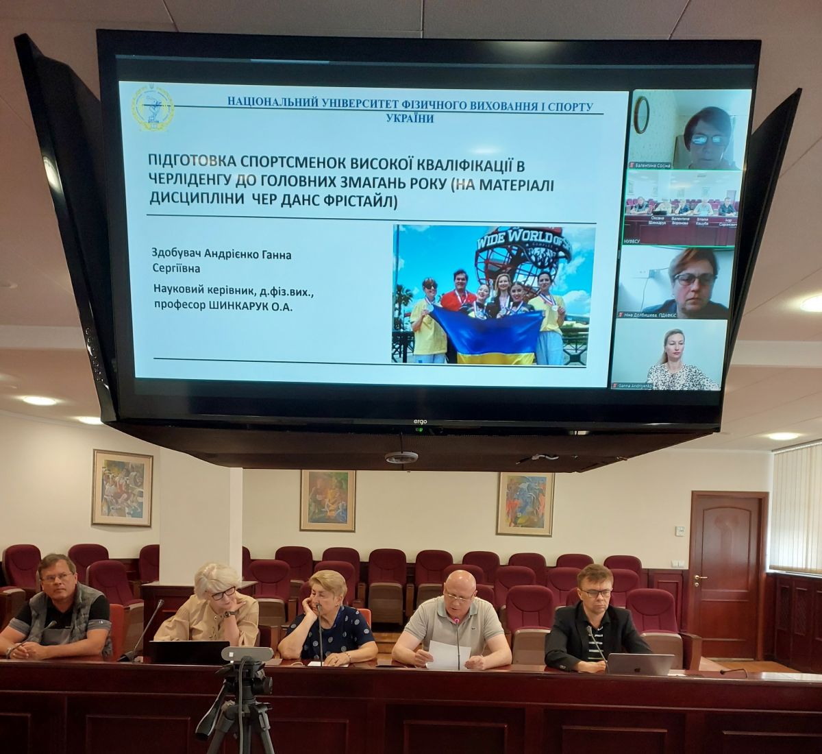 21 травня 2024 р. на засіданні спеціалізованої вченої ради ДФ 24.017.14 Національного університету фізичного виховання і спорту України відбувся успішний захист дисертаційної роботи Андрієнко Ганни Сергіївни «Підготовка спортсменок високої кваліфікації в черліденгу до головних змагань року (на матеріалі дисципліни чер-данс-фрістайл-дует)» з метою присудження їй ступеня доктора філософії з галузі знань 01 Освіта / Педагогіка за спеціальністю 017 Фізична культура і спорт.