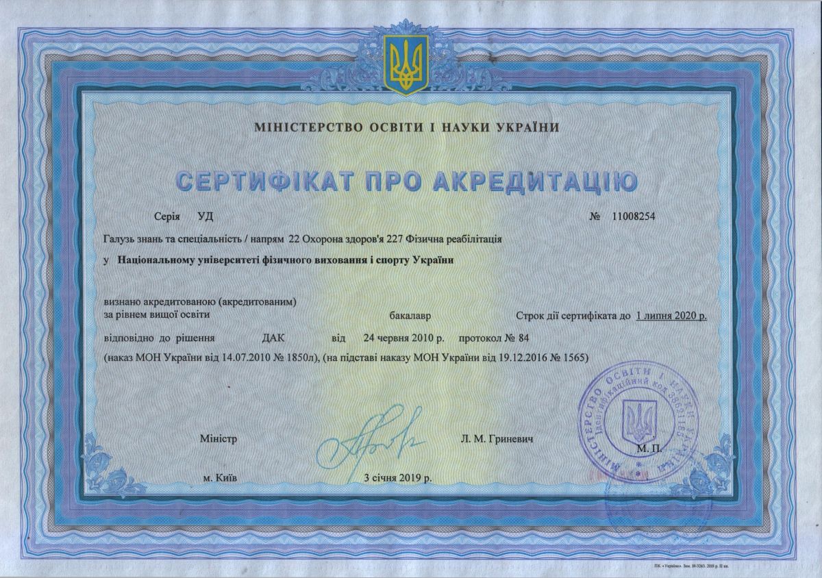 | Speciality: 017 Physical culture and sport Specialization: “Physical Education” “Olympic sport and education” “Sport” “Fitness and recreation” “Management in sport” “Physical rehabilitation” “Athletes training system in Aquatics” “Athletes training system in Track and Field Athletics” “Athletes training system in martial arts” “E-sports” |